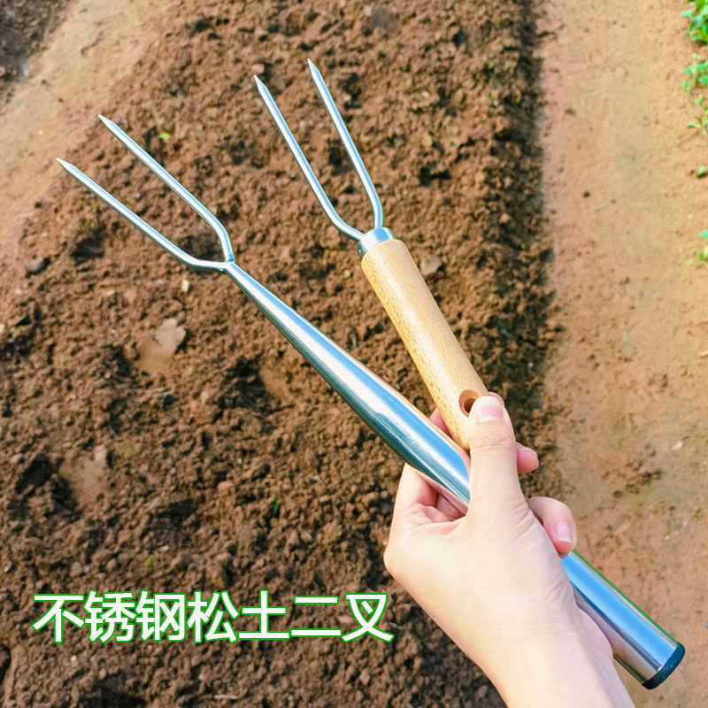 家用园艺工具挖土叉子松土养花盆栽种菜不锈钢园林盆景