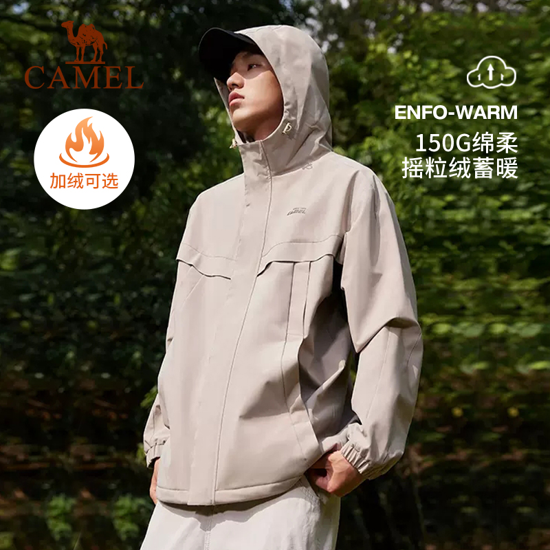 【断码清仓】骆驼运动外套加绒加厚夹克户外软壳防风防水茄克男女