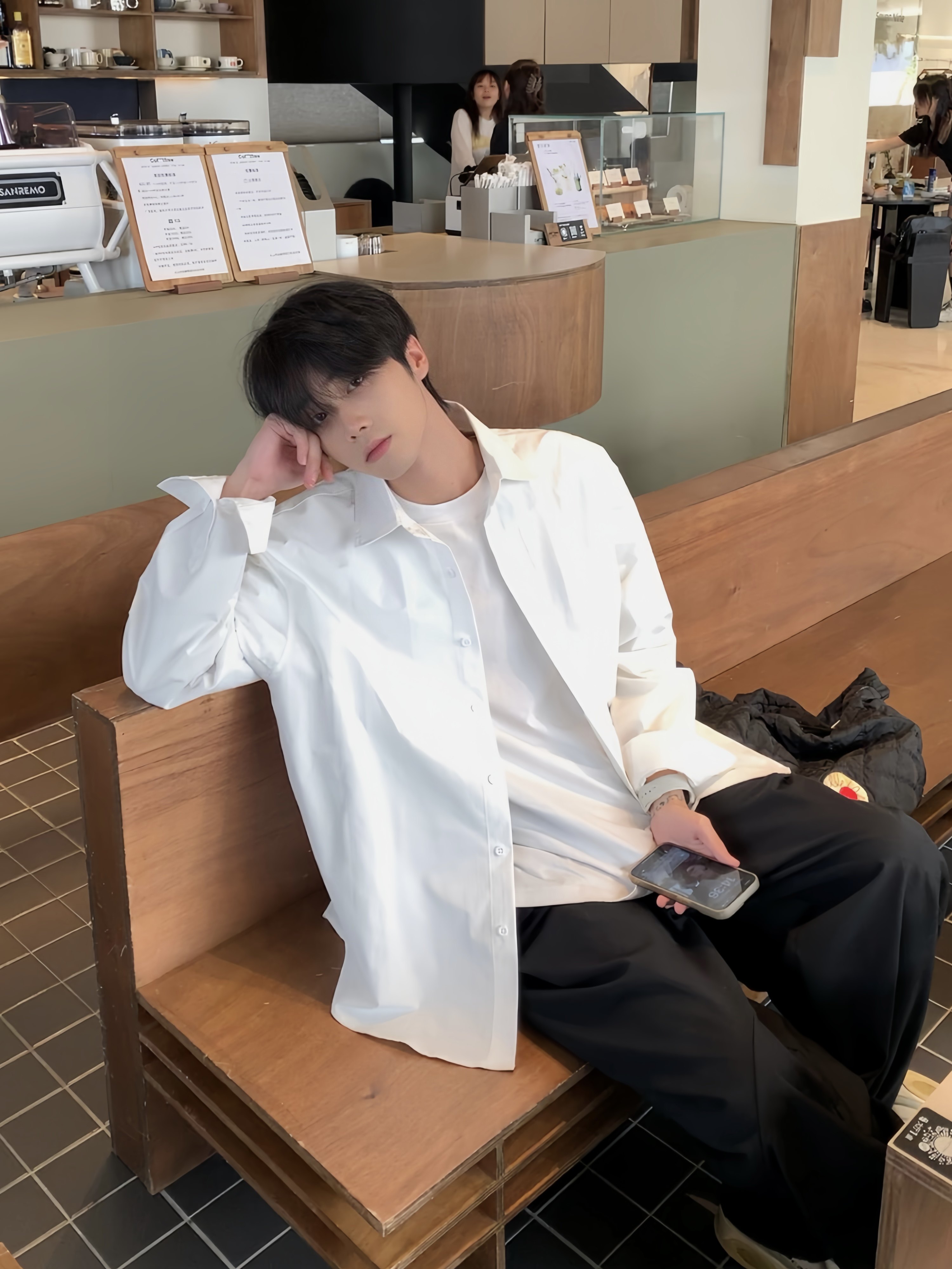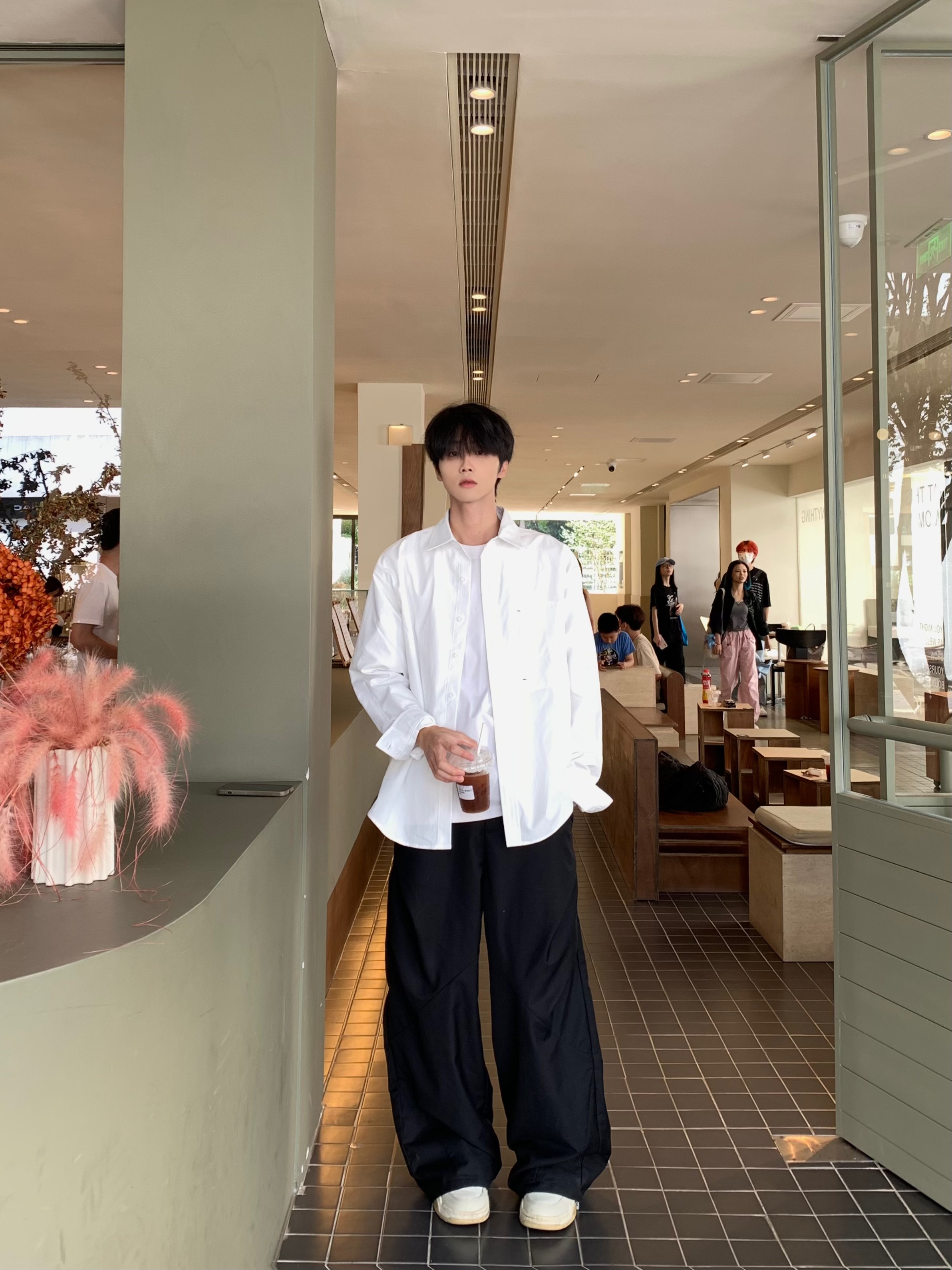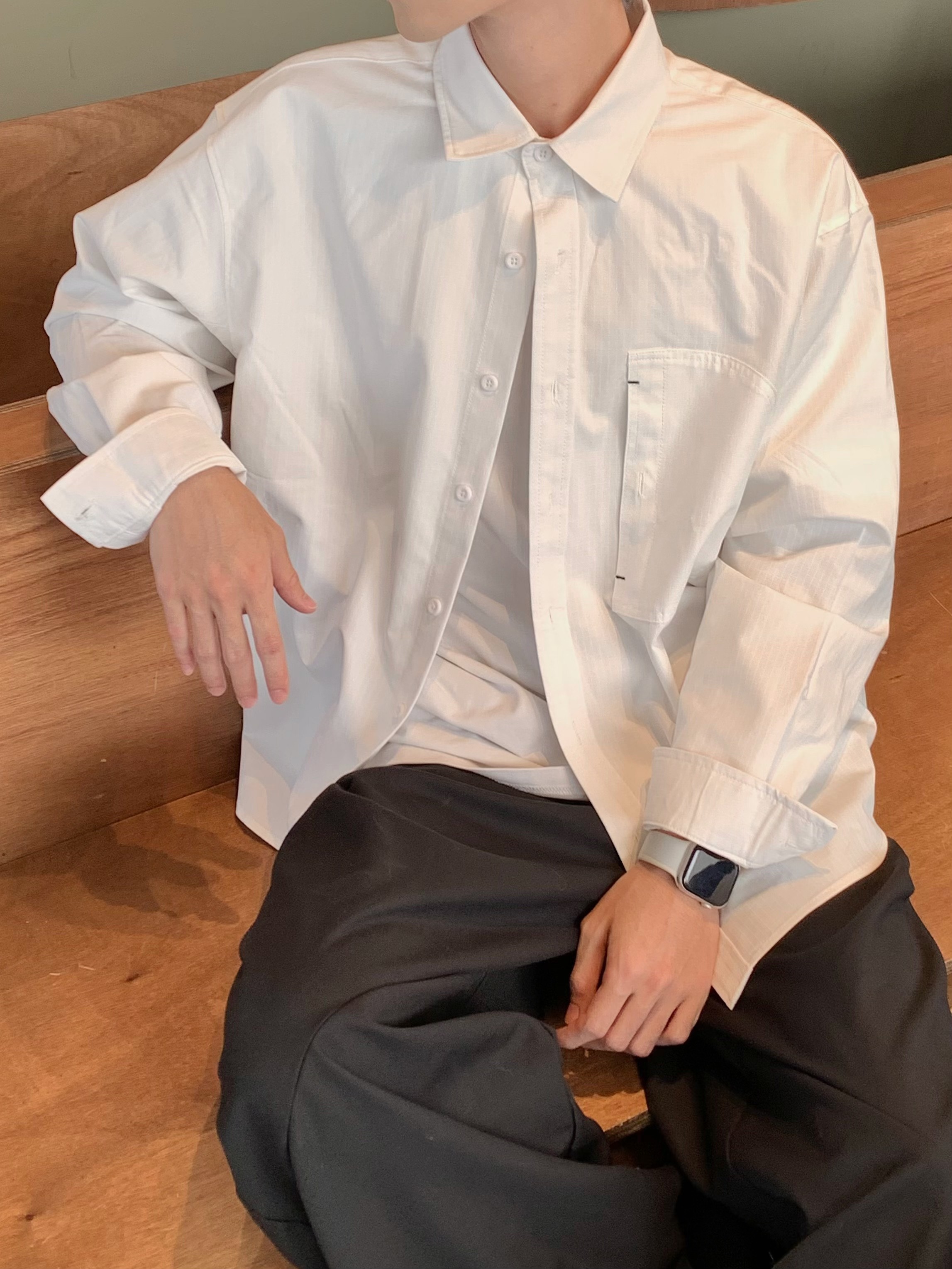 TEN EMPTY长袖白衬衫日韩宽松翻领口袋设计无性别男女上衣衬衫
