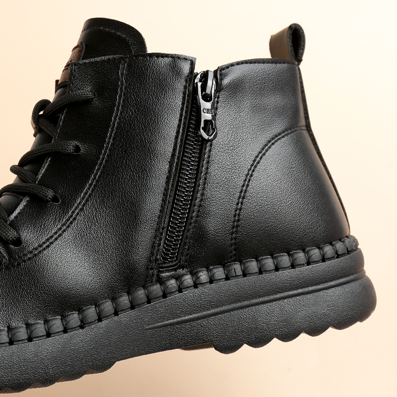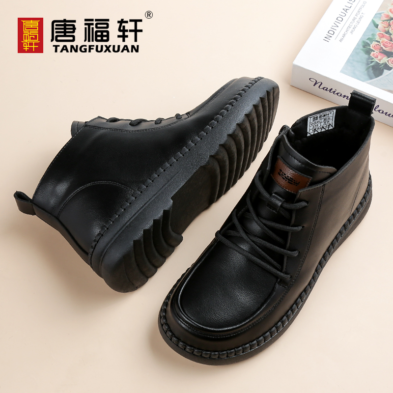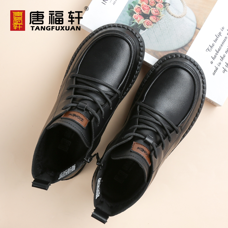 中老年妈妈鞋皮鞋女中高帮冬季加绒保暖马丁靴女上班鞋软底工作鞋