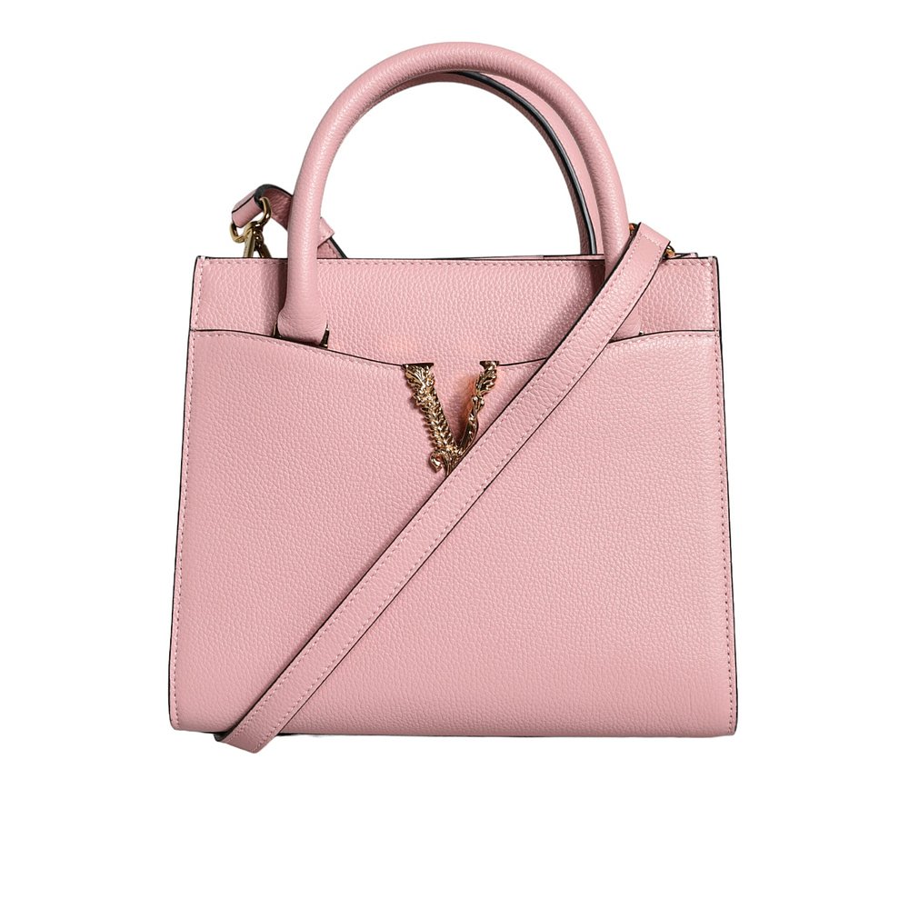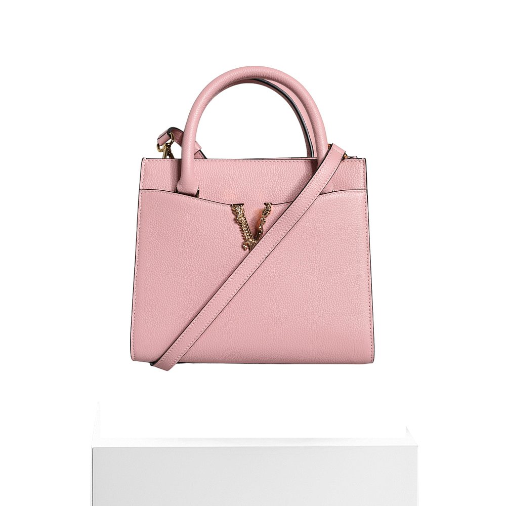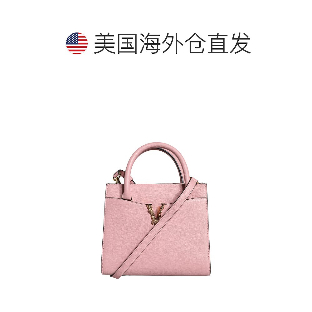 自营Versace 小号顶部手柄粒面小牛皮斜挎包女士包 - 粉色 美国奥