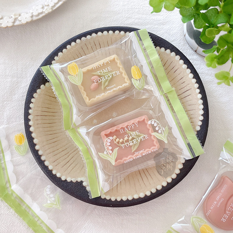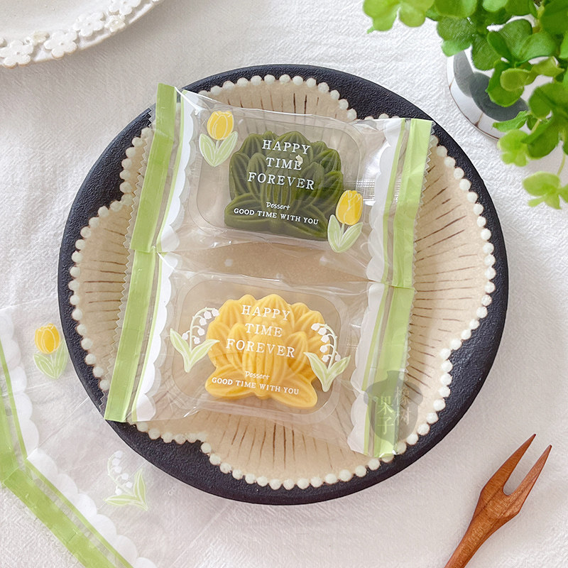 ins风郁金香绿豆糕机封袋铃兰花朵中秋节月饼包装袋糕点包装封袋