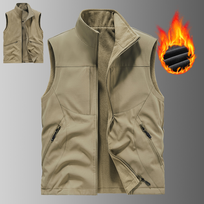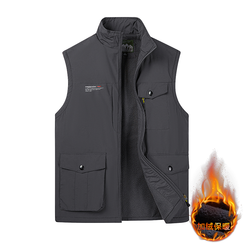 男士马甲秋冬季加绒爸爸工装保暖背心摇粒绒秋冬大码坎肩运动马夹