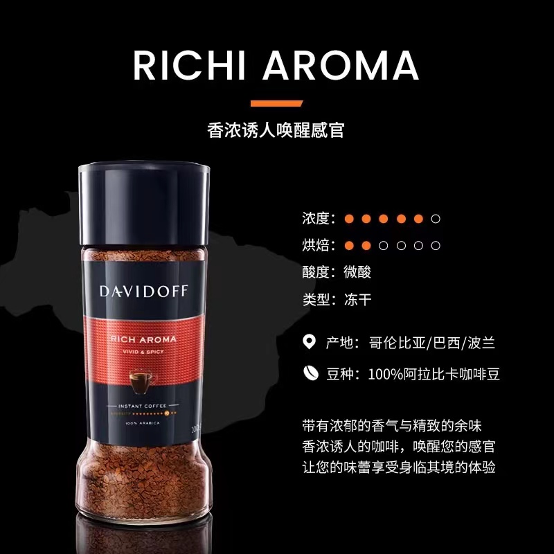 Davidoff大卫杜夫黑咖啡无蔗糖美式冻干醇香浓厚冷热双泡意式浓缩