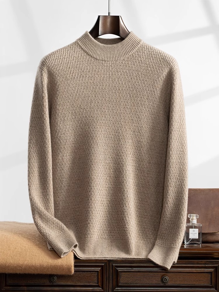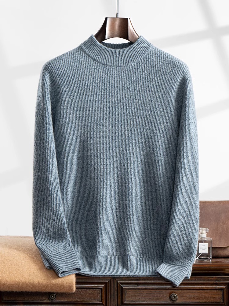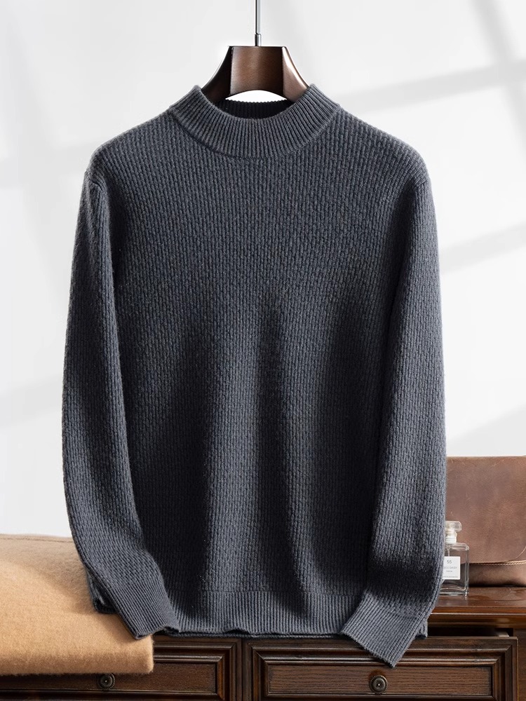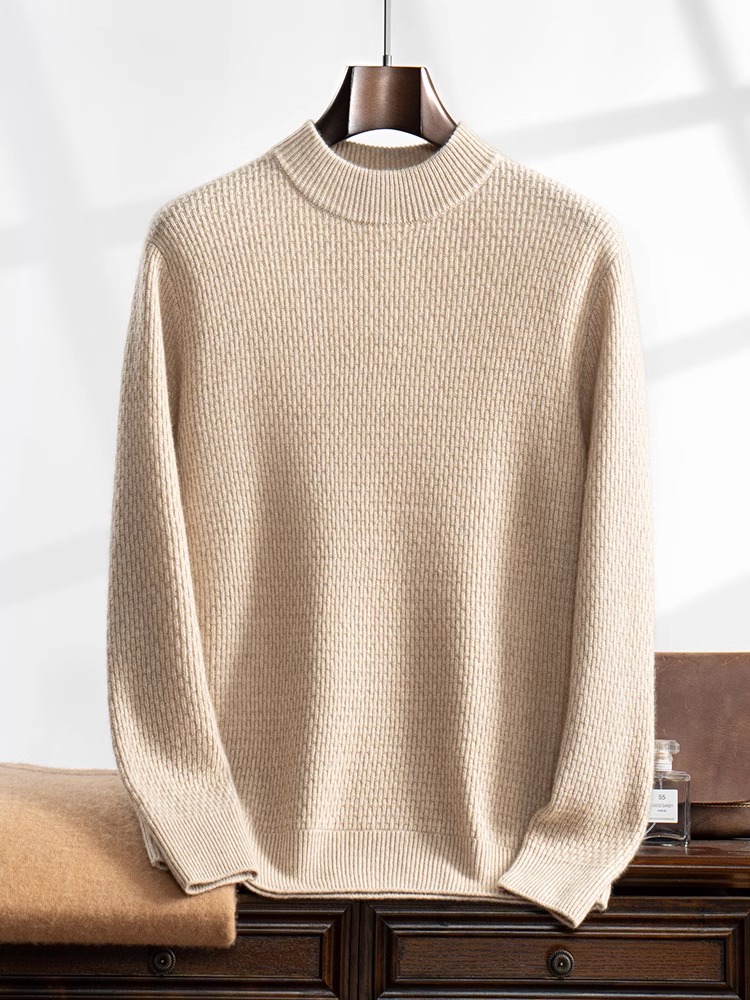 三股加厚100%纯山羊绒衫男士半高领玉米粒提花商务休闲打底毛衣