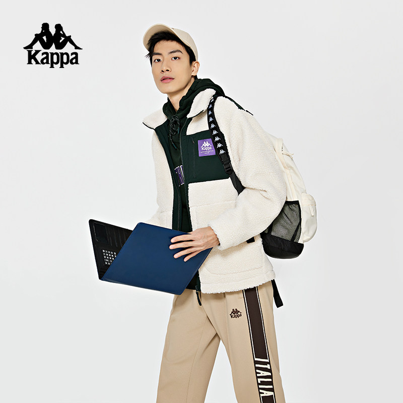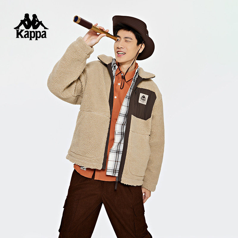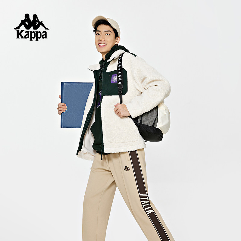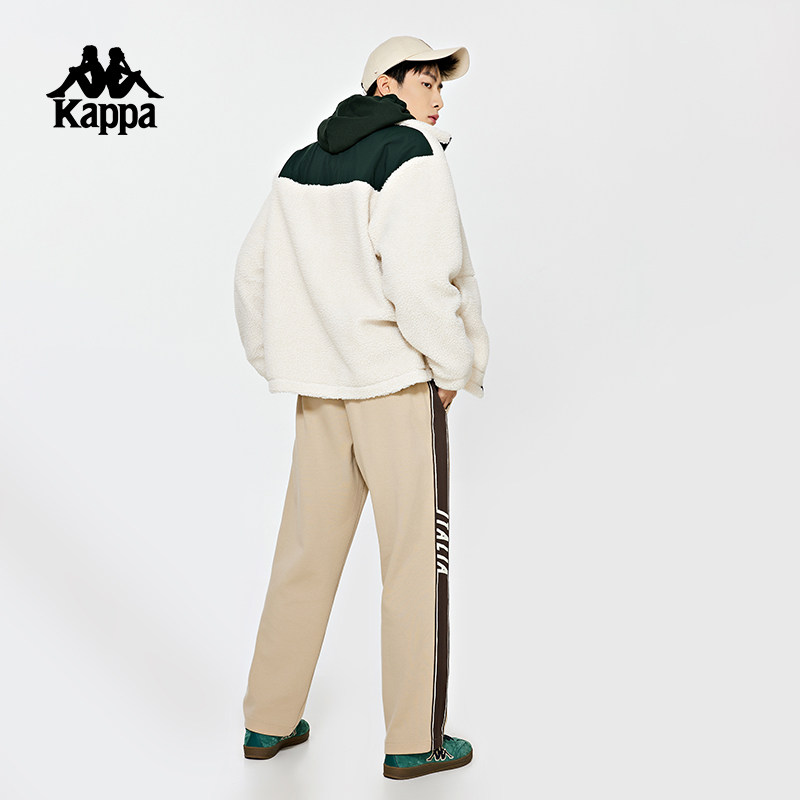 Kappa卡帕outlets羊羔绒卫衣新款男冬撞色拼接运动针织开衫外套
