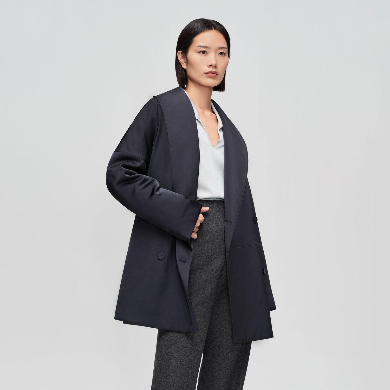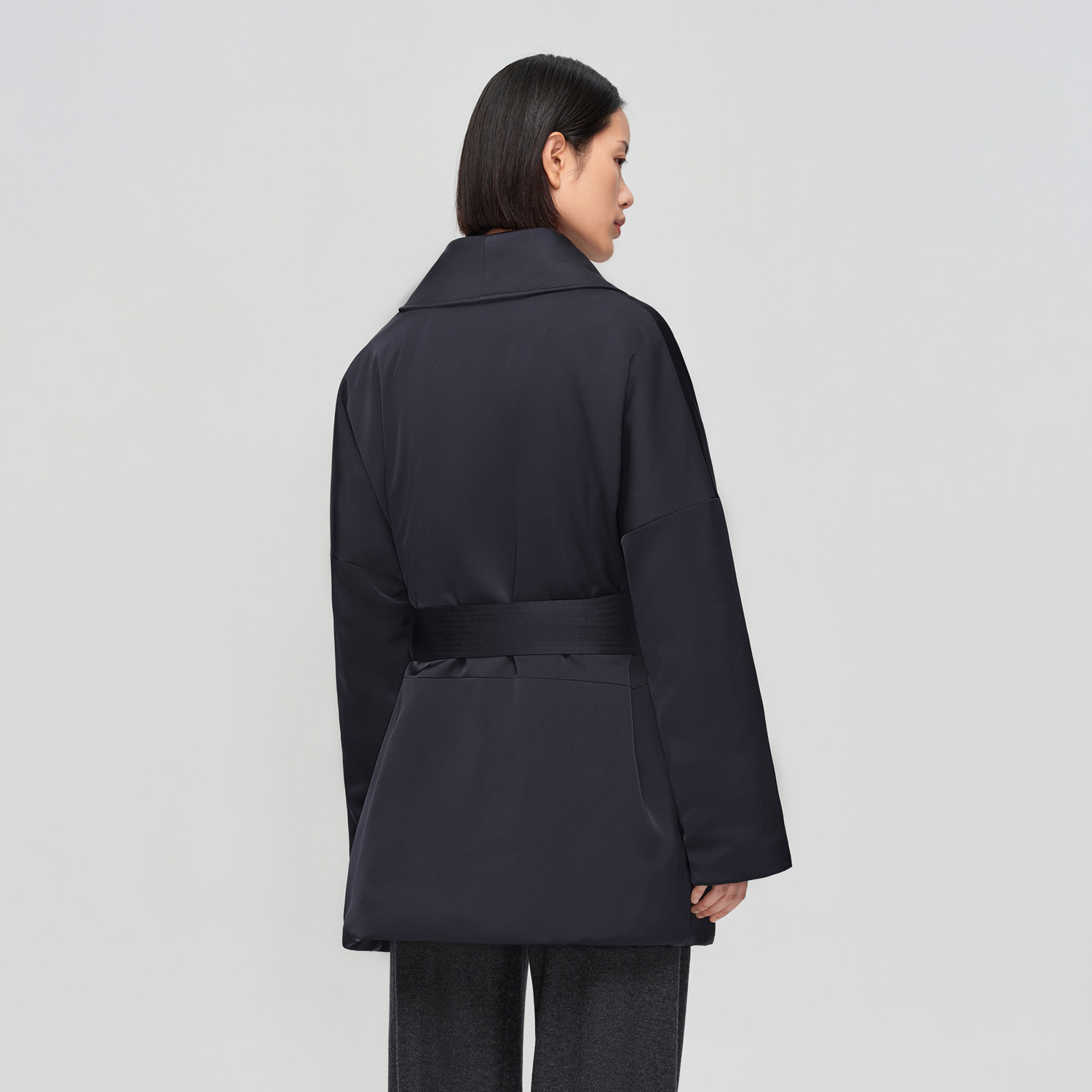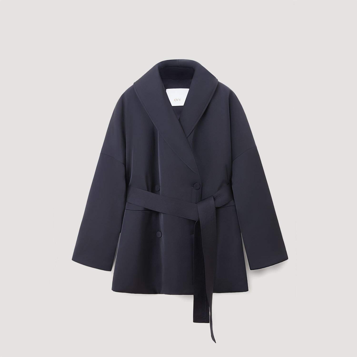 OVV秋冬新款女装光泽感面料青果领双排扣羽绒服外套