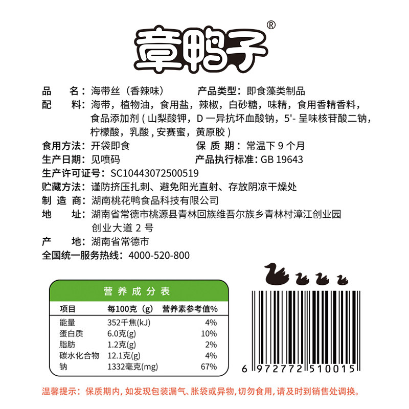 章鸭子海带丝片400g开袋即食包装海草零食小吃湖南特产风味香辣味