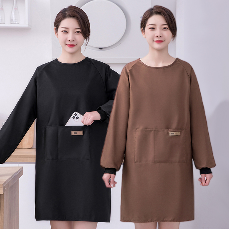 简约纯色防水罩衣家用厨房长袖围裙餐饮专用定制logo印字工作服女