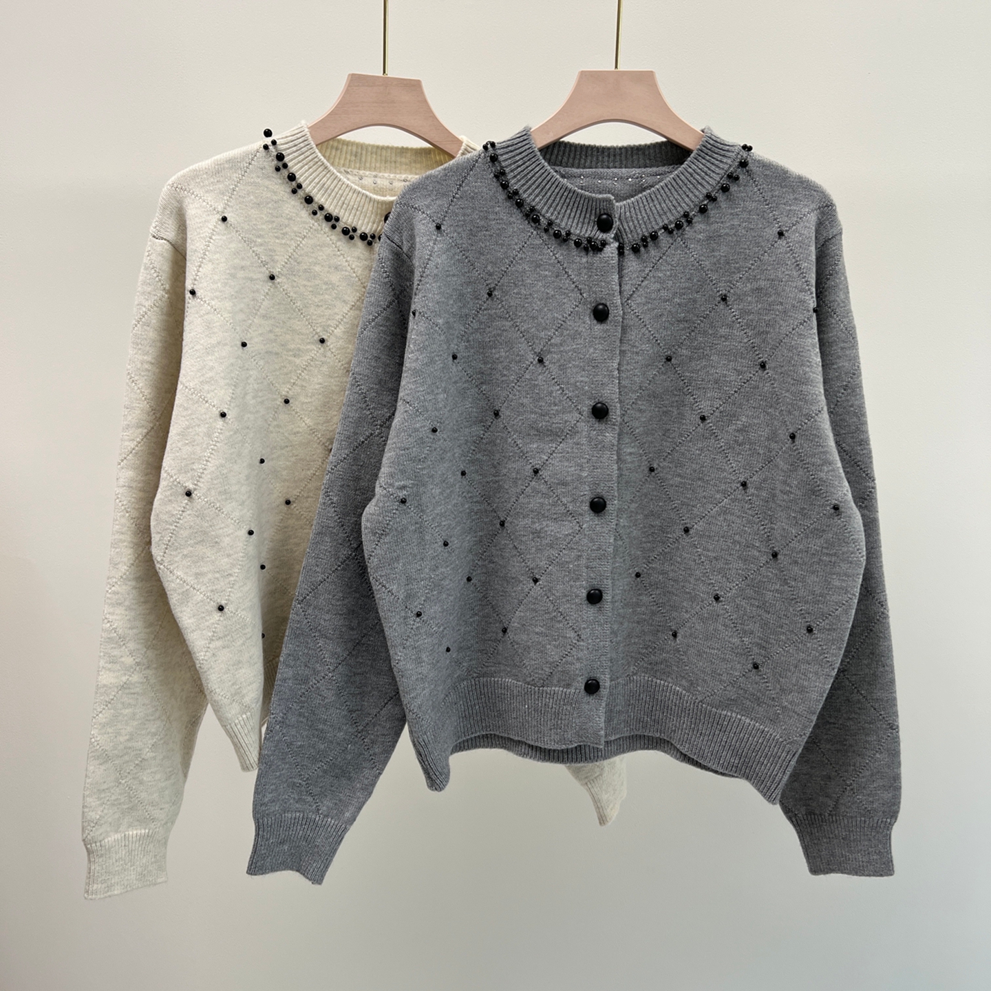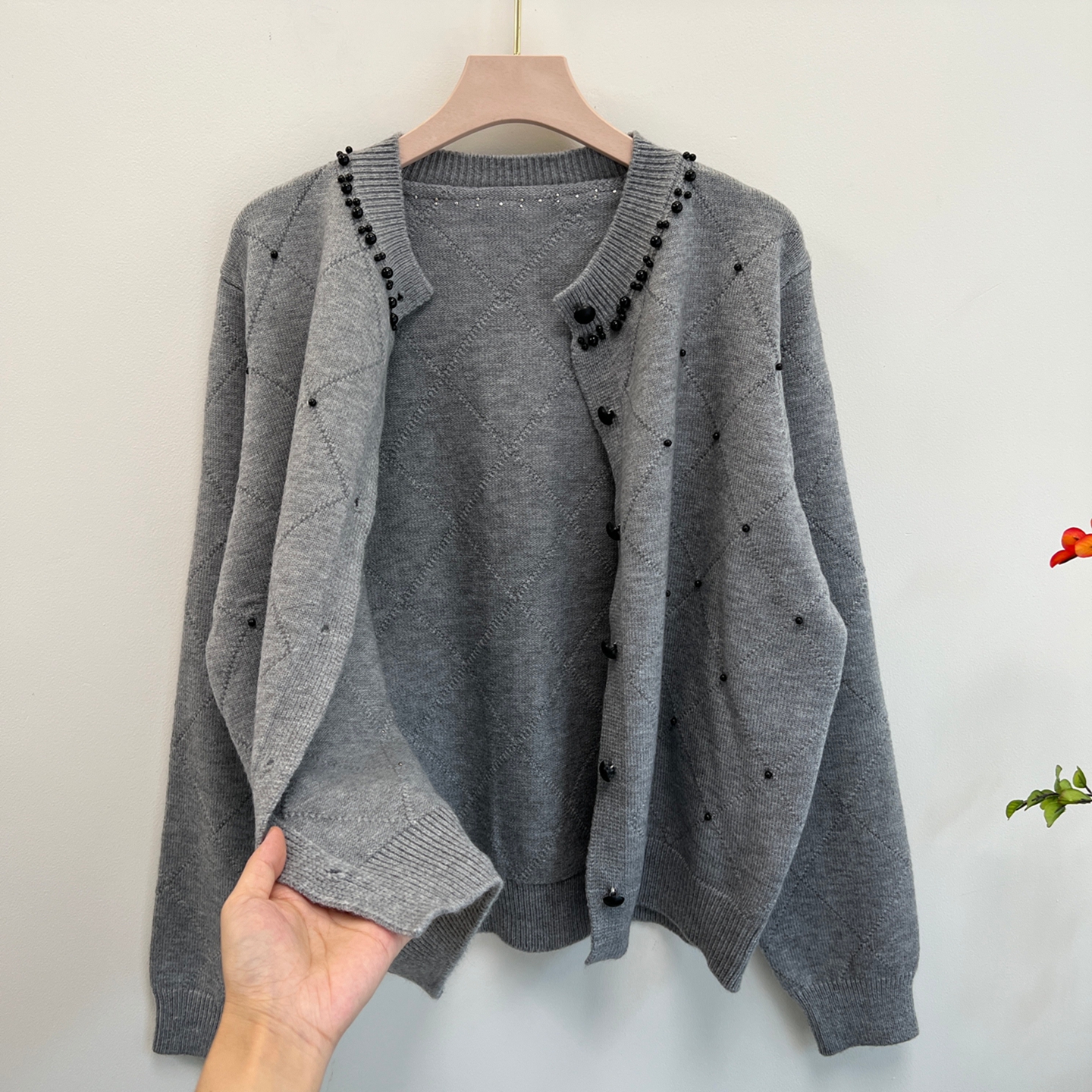 中年妈妈春秋装开衫外套洋气上衣2025新款中老年女奶奶圆领针织衫