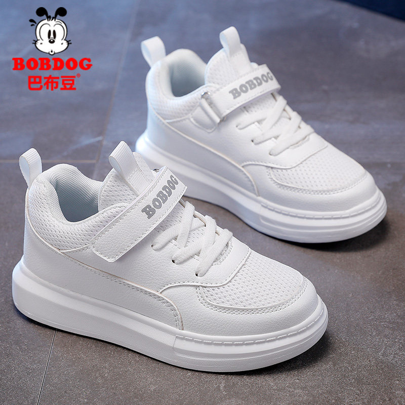 巴布豆童鞋儿童白色运动鞋男童小白鞋白鞋透气小学生板鞋女童鞋子