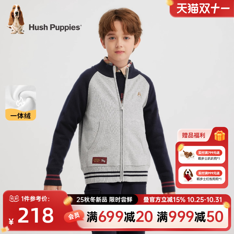 暇步士童装男童毛衣外套2025秋冬新款中大童加绒线衣开衫儿童上衣