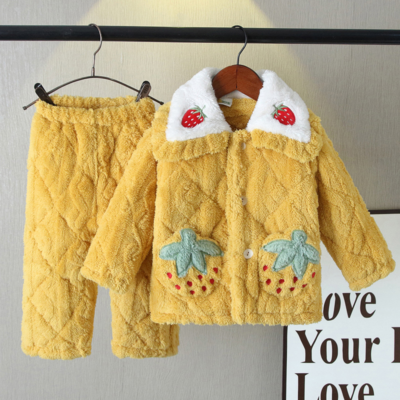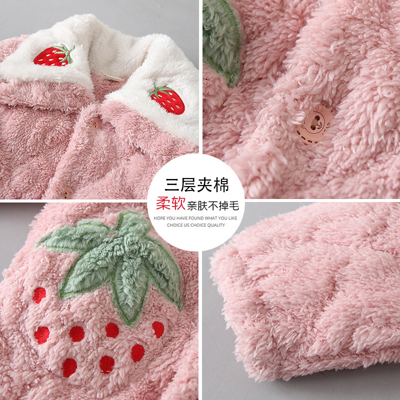 儿童睡衣女孩冬季加绒加厚款珊瑚绒套装可爱法兰绒新款女童家居服