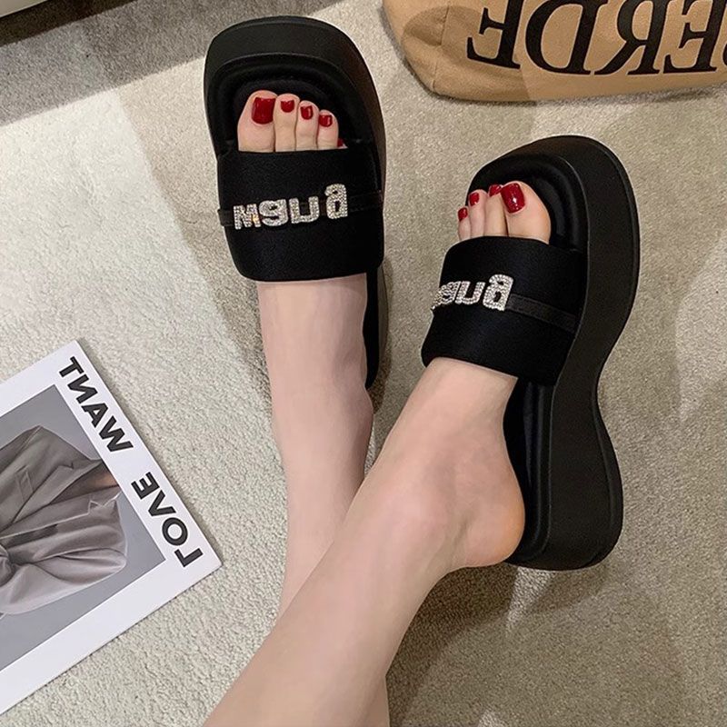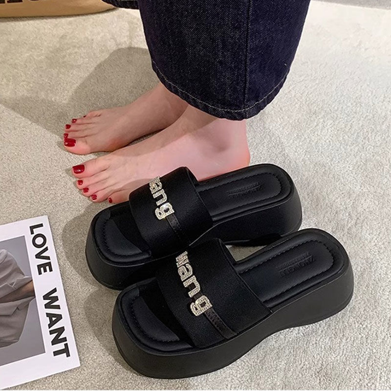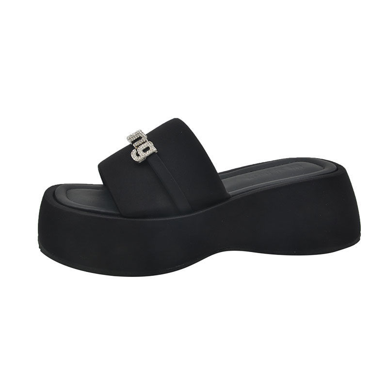 拖鞋女外穿2024新款夏天高跟松糕增高夏季凉鞋厚底女鞋黑色凉
