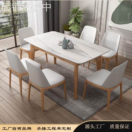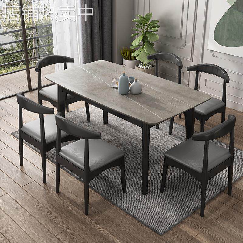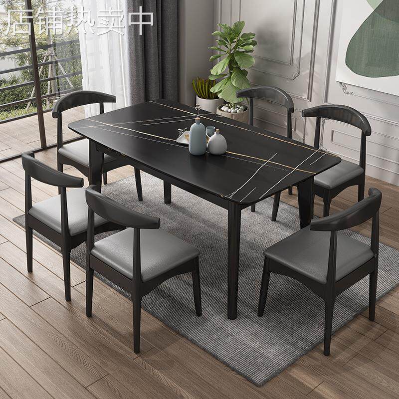 岩板餐桌家用方形北欧吃饭桌简约现代桌椅组合小户型餐厅成套家具