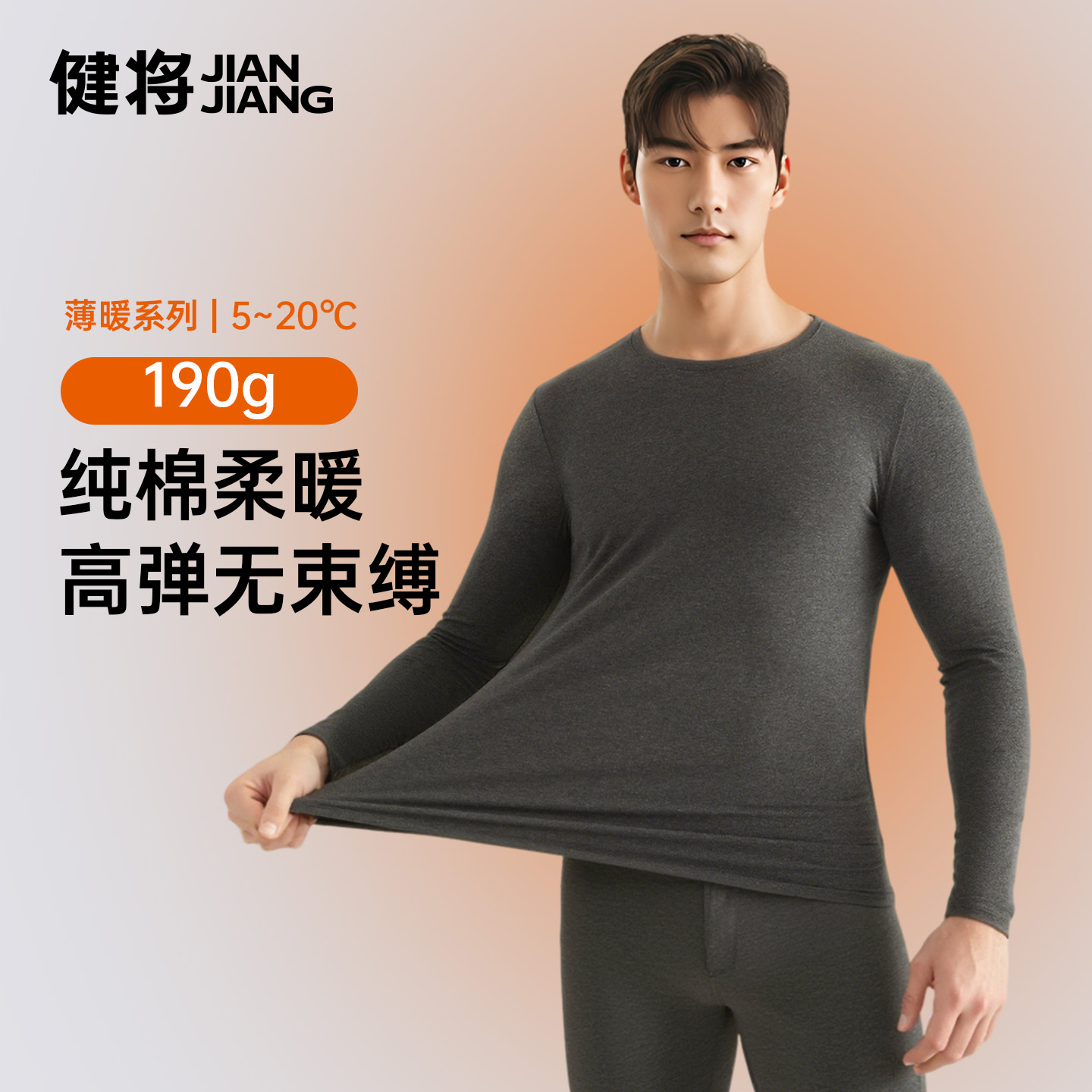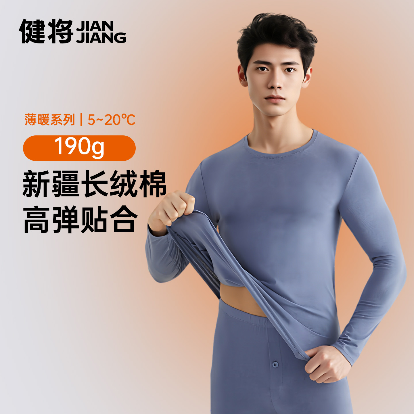健将男纯棉保暖秋衣秋裤套装亲肤