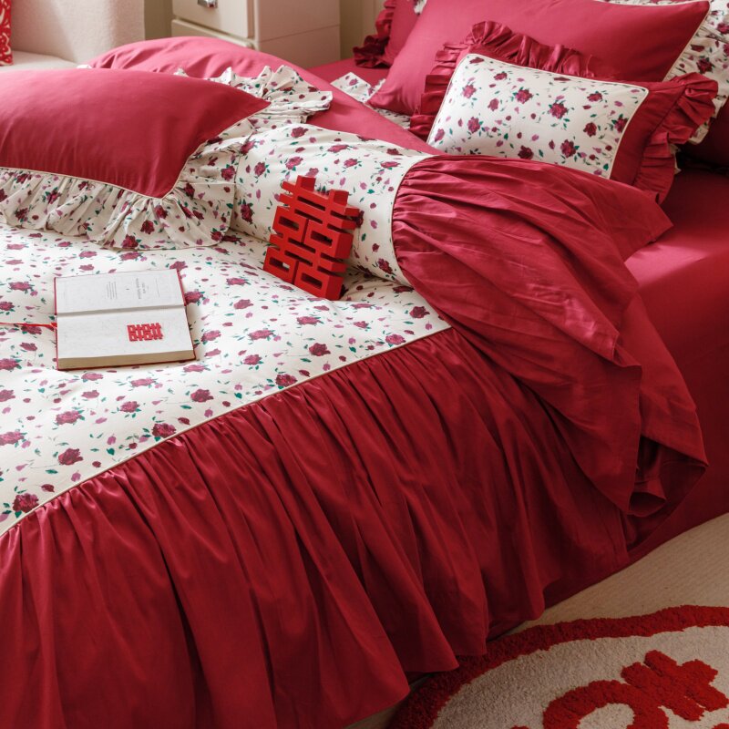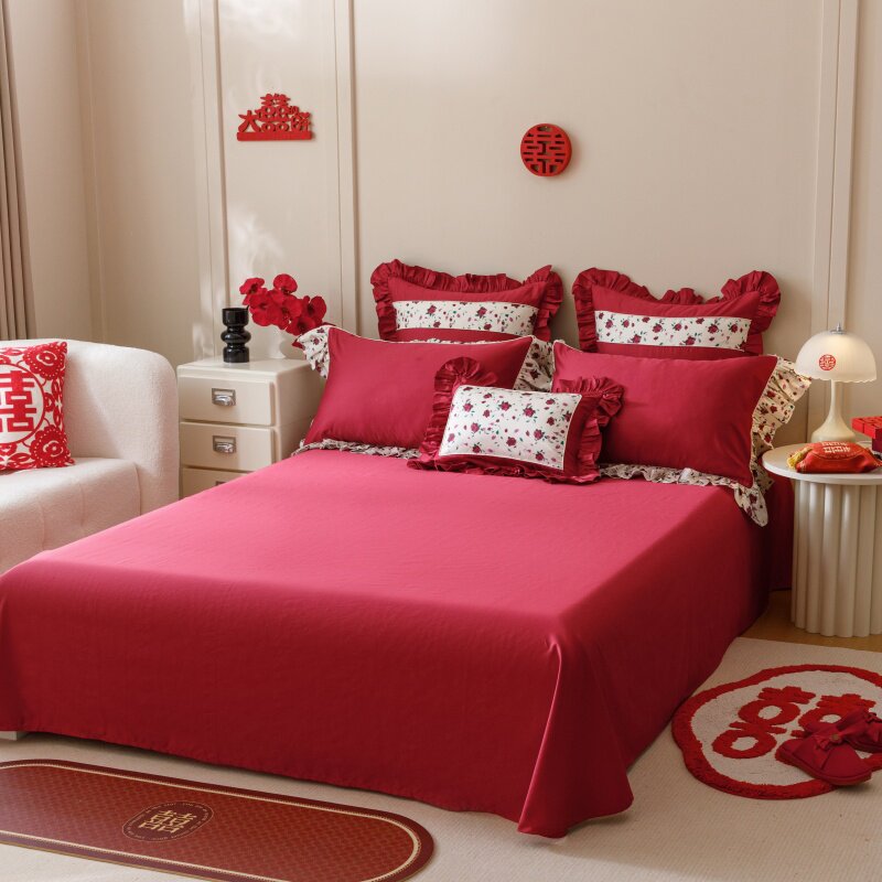 全棉数码印花澳棉婚庆四件套喜庆AB版被套床单1.8m床床品