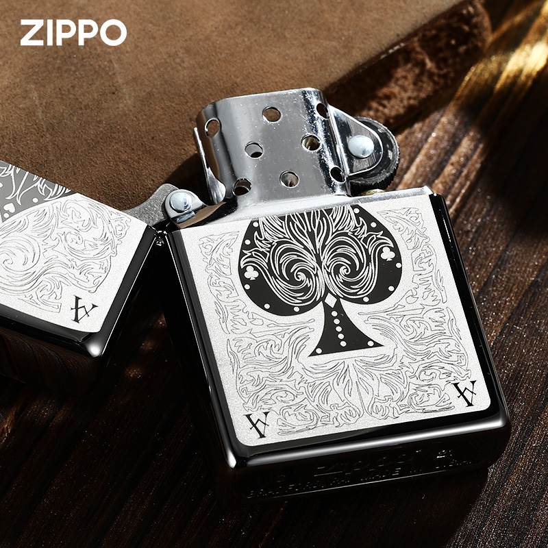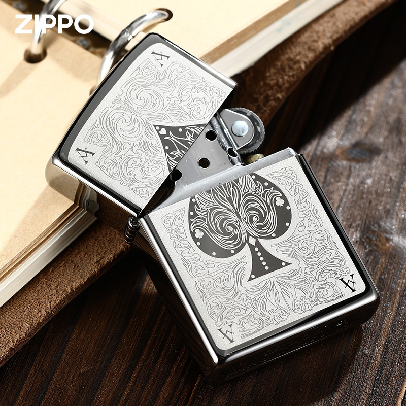 zippo打火机正品黑冰150黑桃A