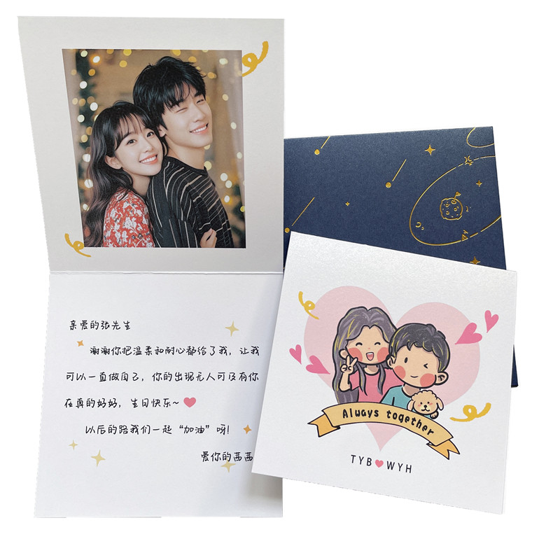 原创送男女朋友情人闺蜜结婚周年生日照片定制七夕加油小贺卡片