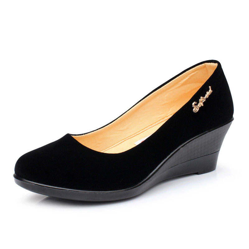 春秋老北京布鞋女鞋单鞋坡跟平底酒店工装高跟黑色工作鞋跳舞鞋女