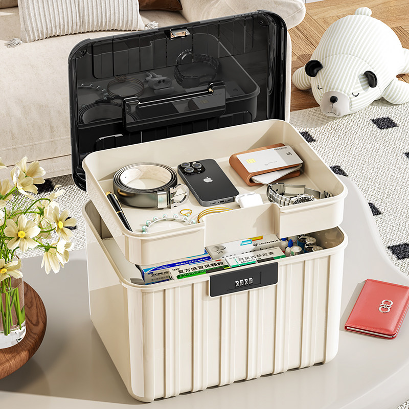 手提密码箱家用带锁收纳箱文件证件隐私物品储物箱学生手机保管箱