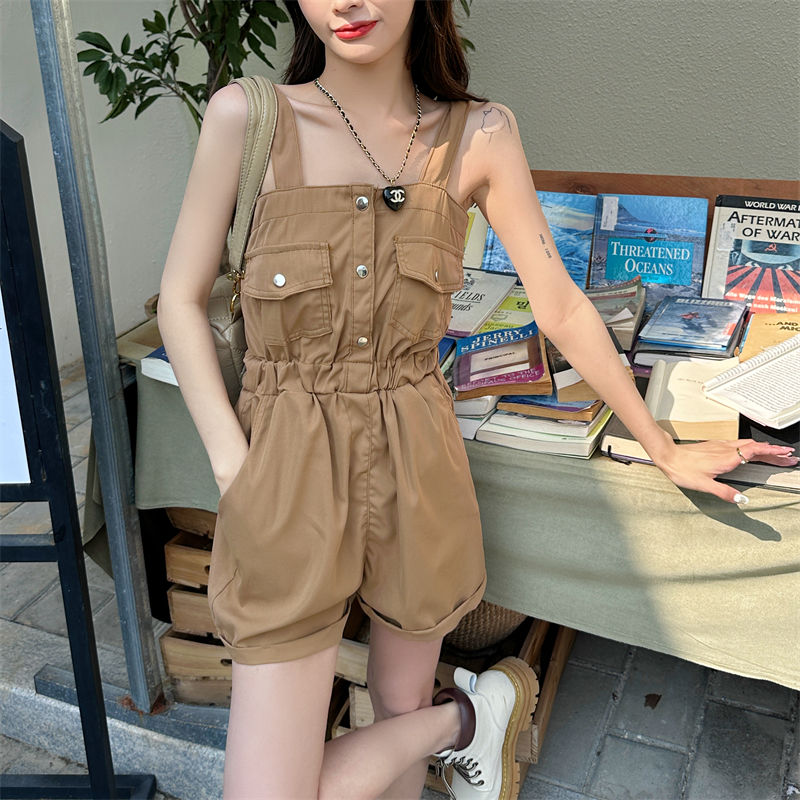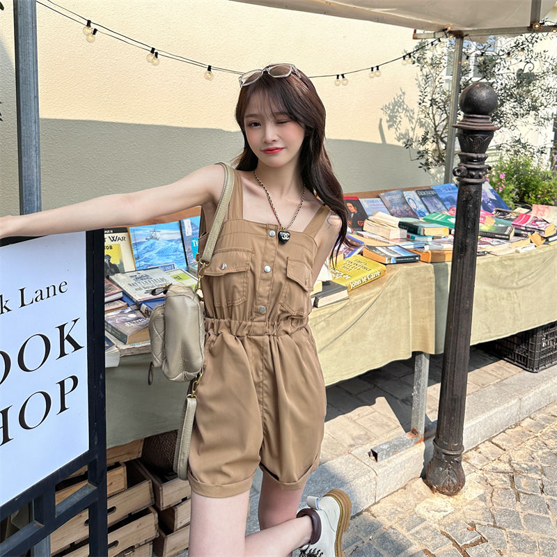 大码减龄牛仔背带短裤女学生夏季新款松紧腰显瘦宽松卷边阔腿裤子