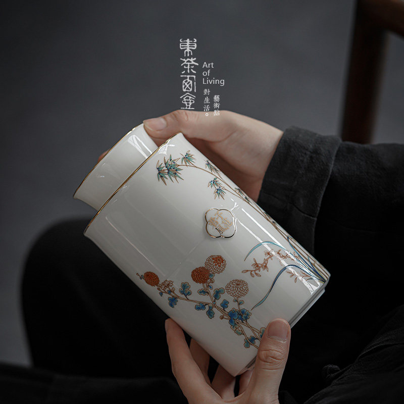 君子风范茶叶罐大号陶瓷密封罐茶叶包装定制茶礼绿茶罐存茶仓茶缸