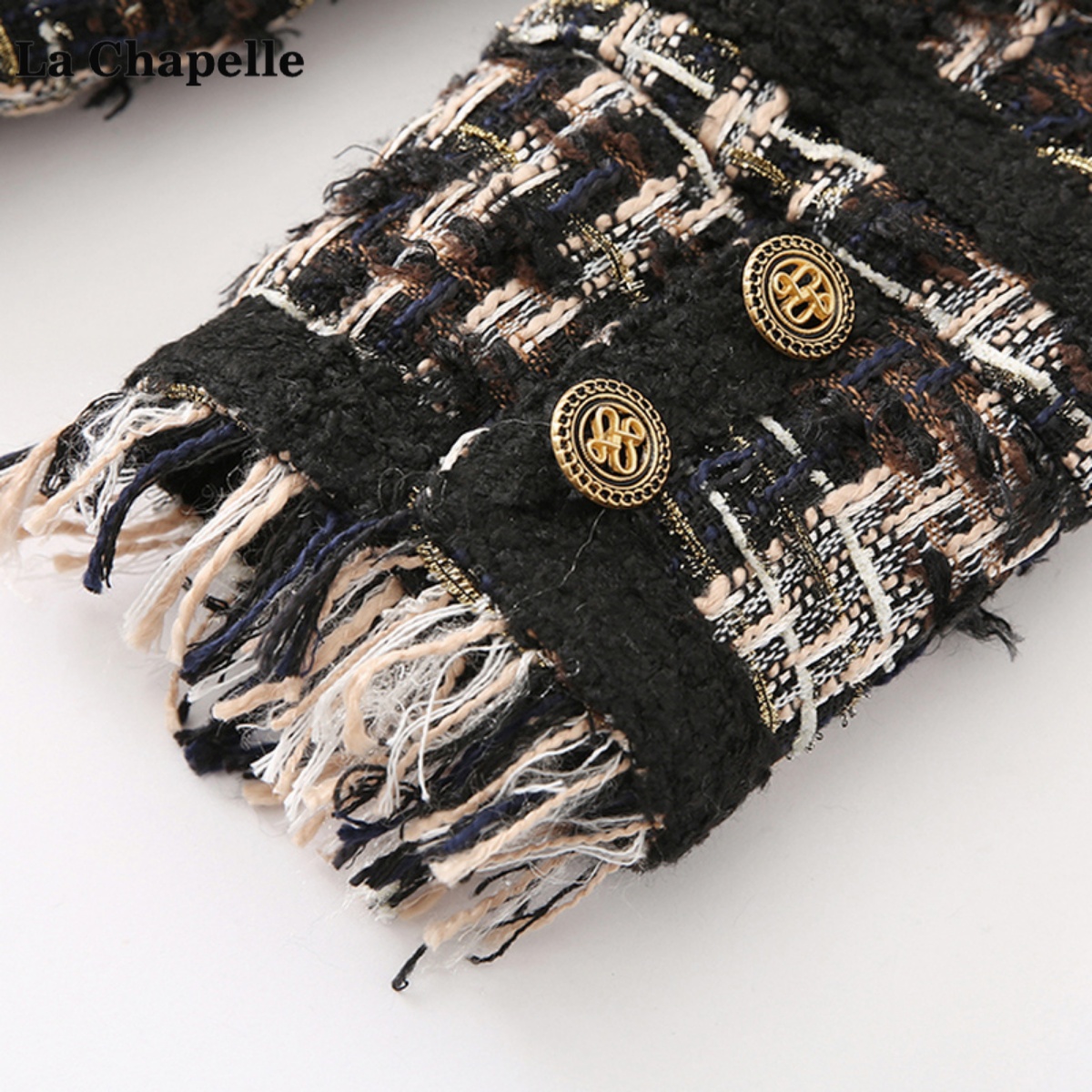 拉夏贝尔/La Chapelle小香风流苏格子外套女秋季新款宽松显瘦上衣