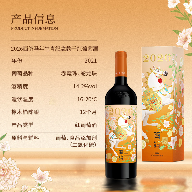 【马年好礼】西鸽酒庄马年生肖酒赤霞珠蛇龙珠混酿干红宁夏红酒