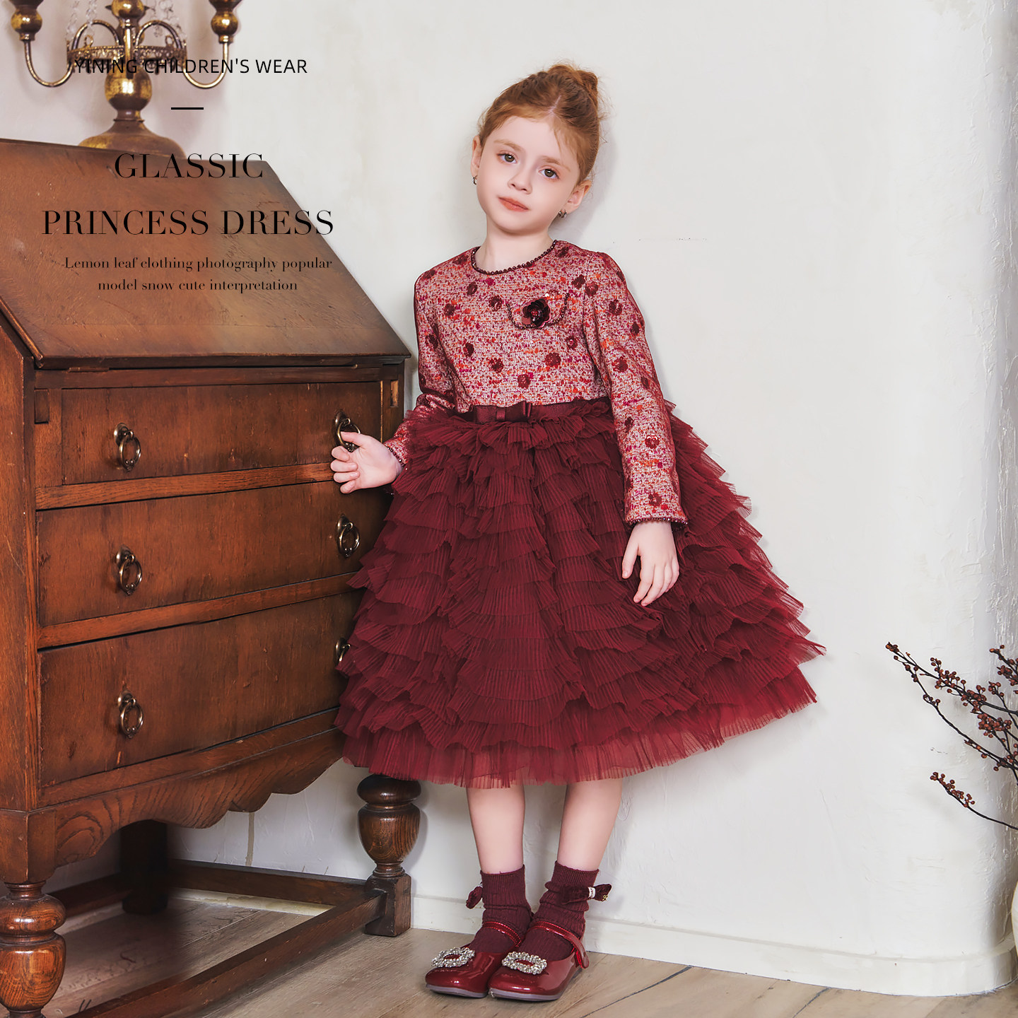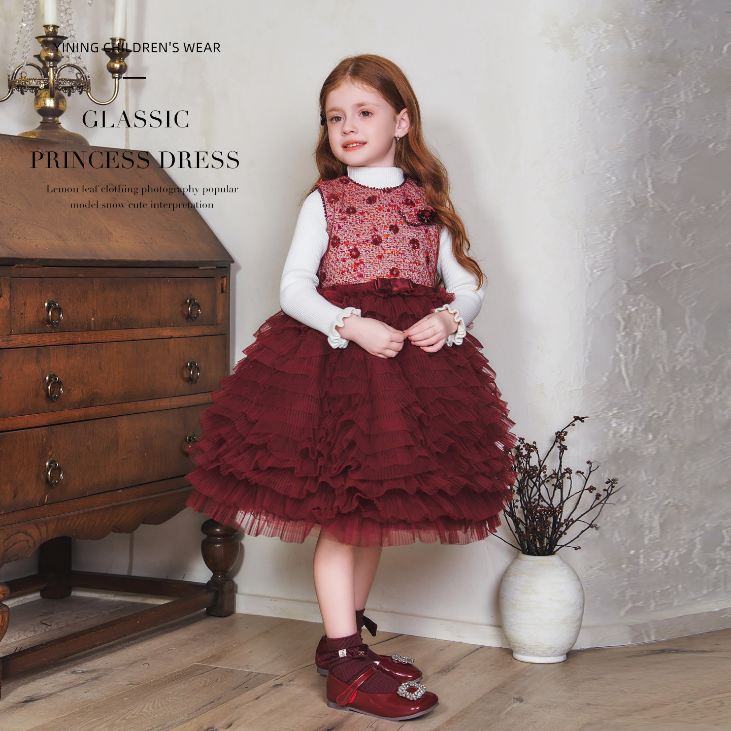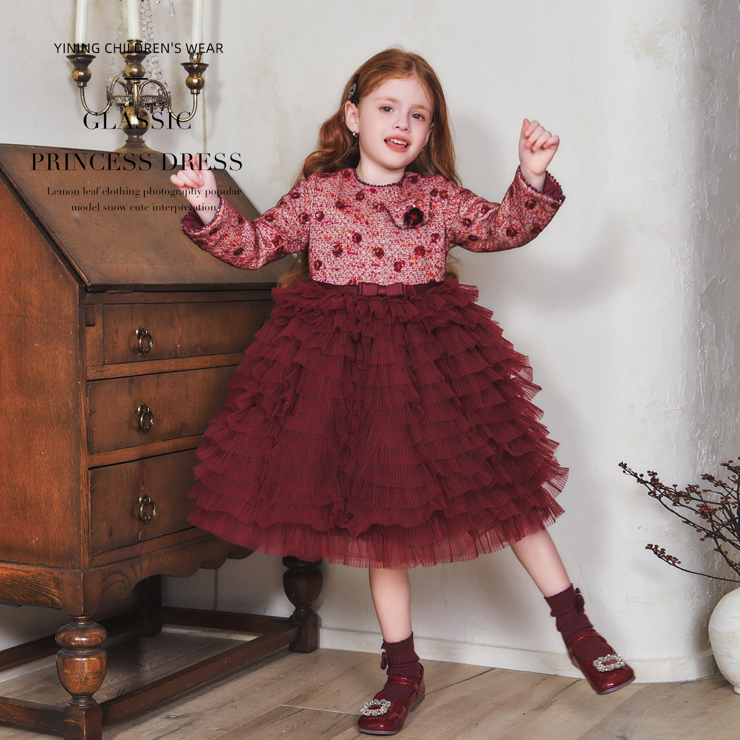 新款冬装女童红色裙子小香风新年儿童公主裙宝宝秋冬连衣裙大女孩