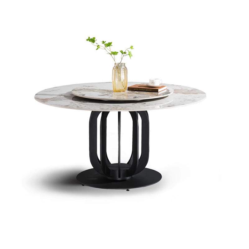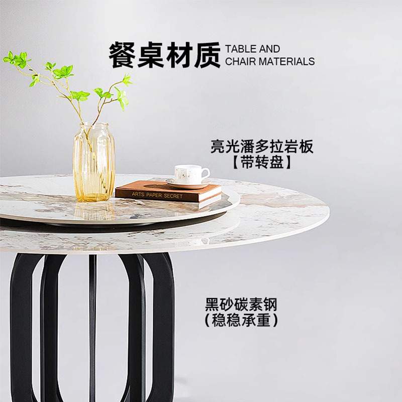 意式哑光岩板餐桌椅组合家用现代简约轻奢长方形圆饭桌带转盘餐桌