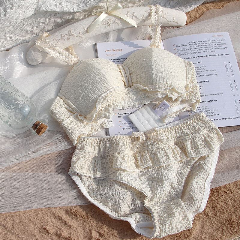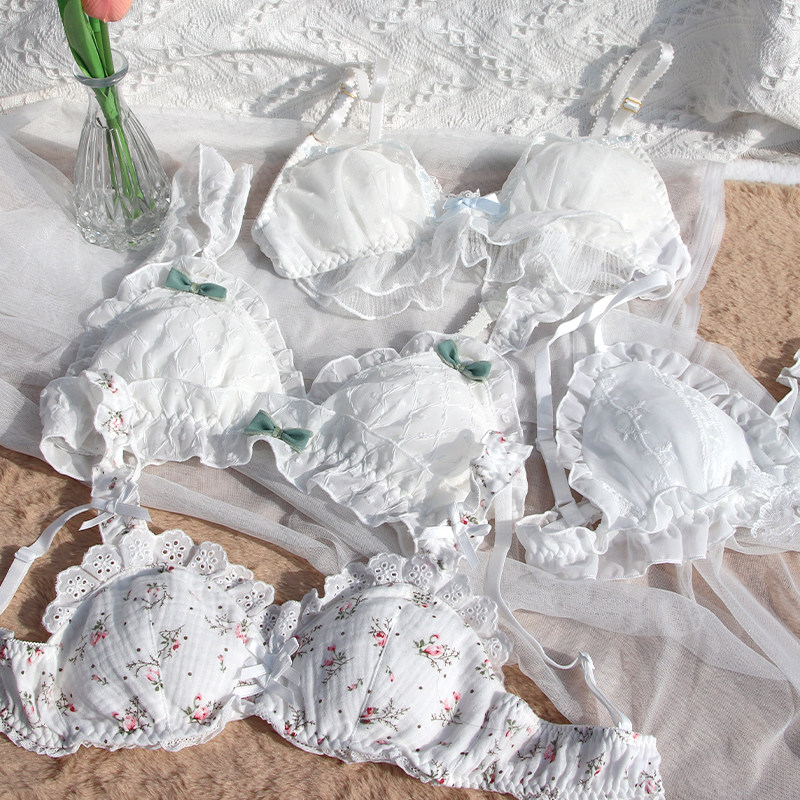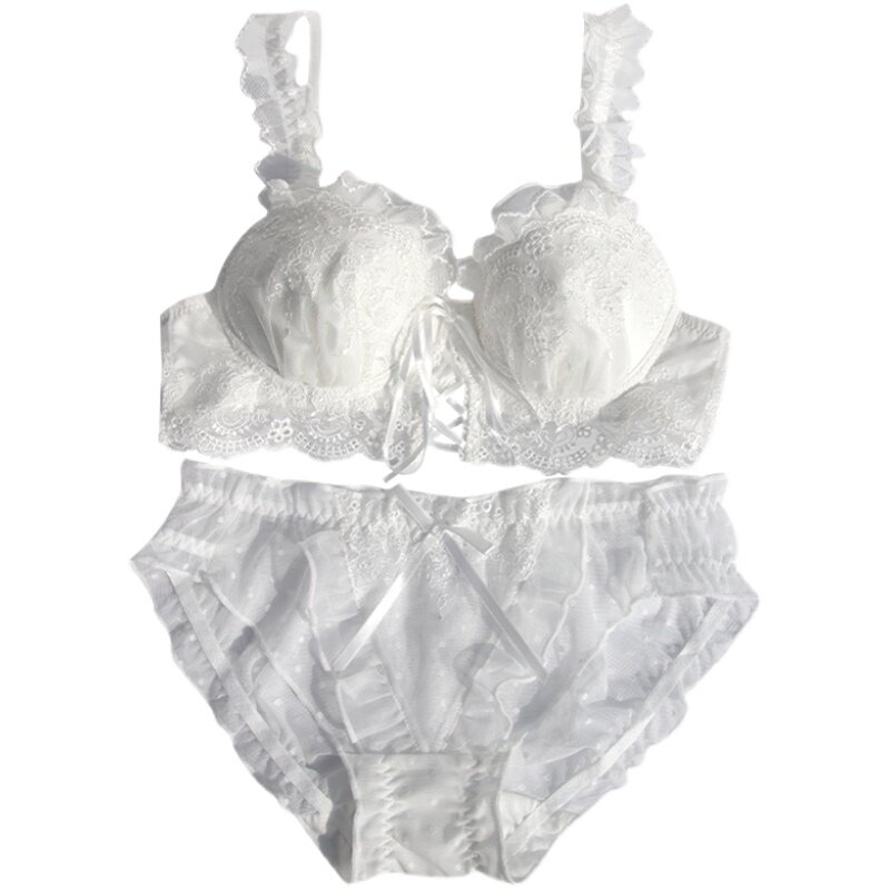 内衣日系少女白色聚拢胸罩无钢圈薄款纯棉蕾丝性感纯欲风文胸套装