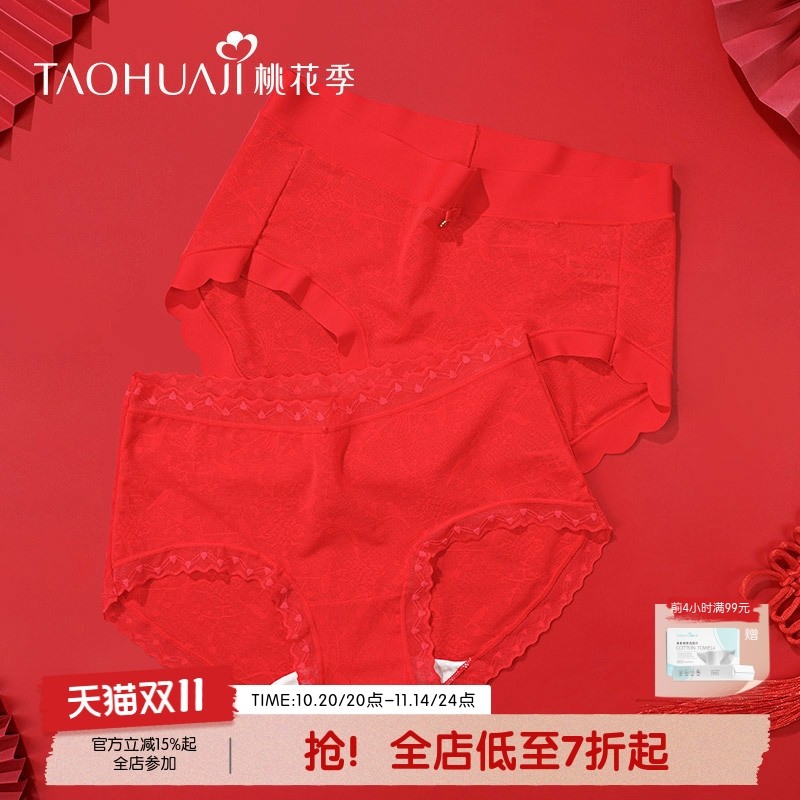 桃花季红色情侣内裤结婚女士红内裤本命年三角中腰裤男士平角内裤