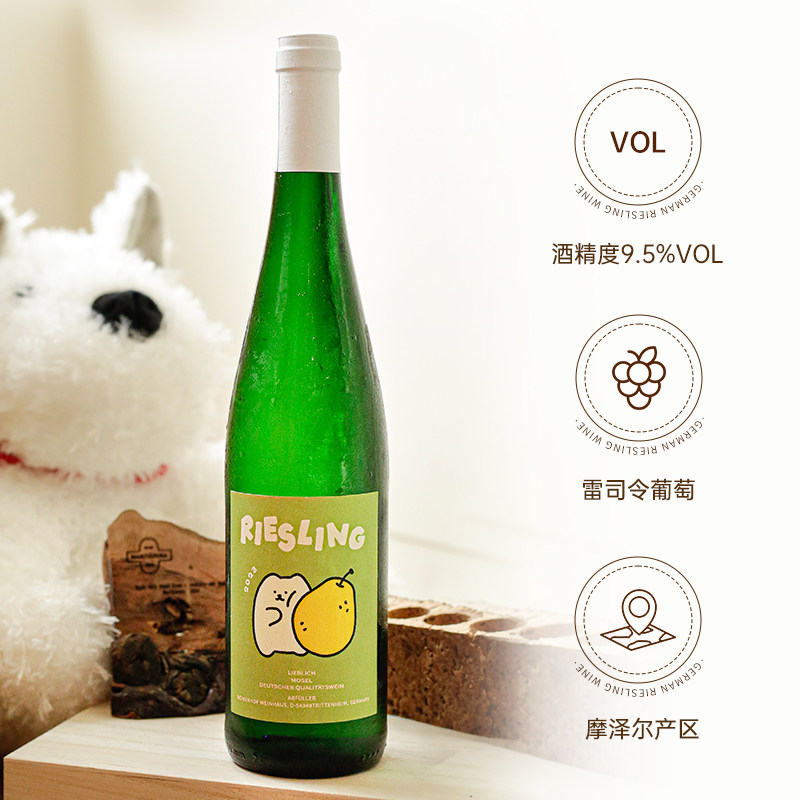 墙推荐摩泽尔雷司令香甜菠萝蜜瓜德国进口小汪的梨想半甜白葡萄酒