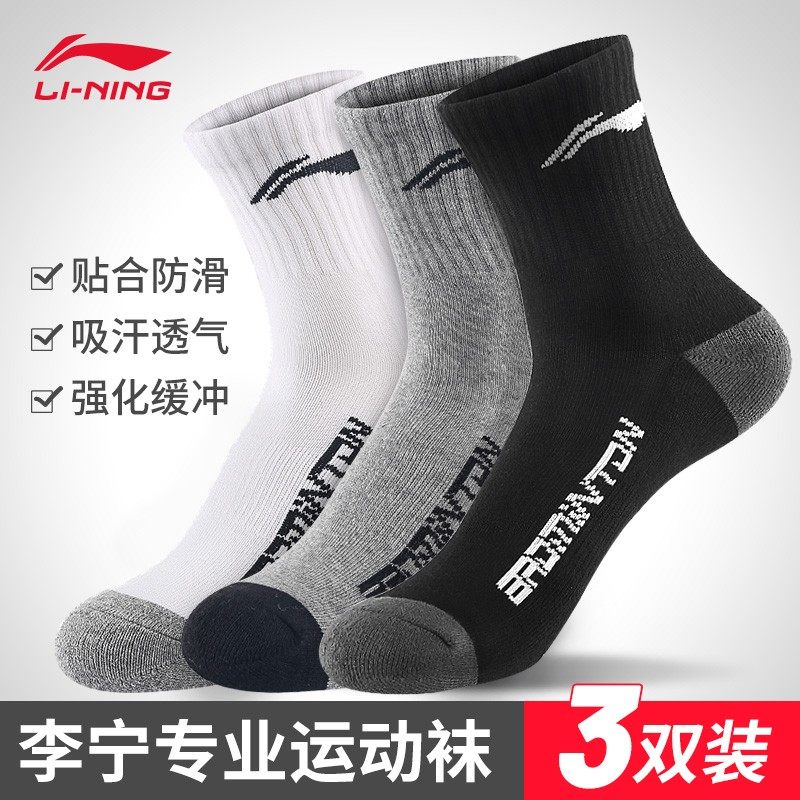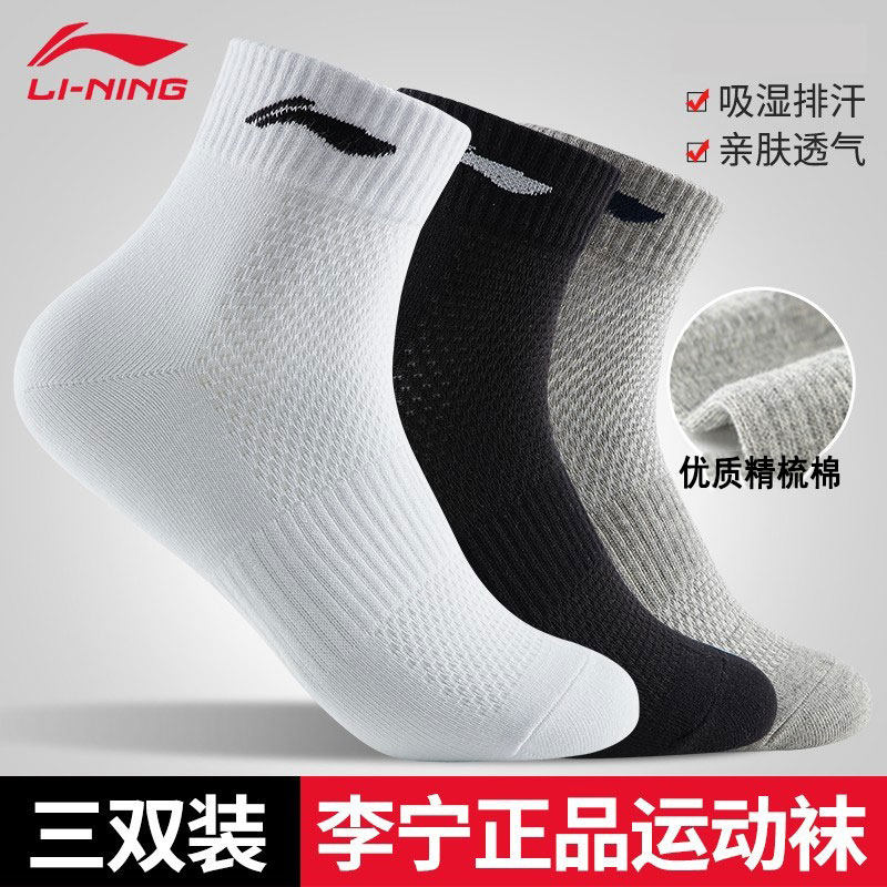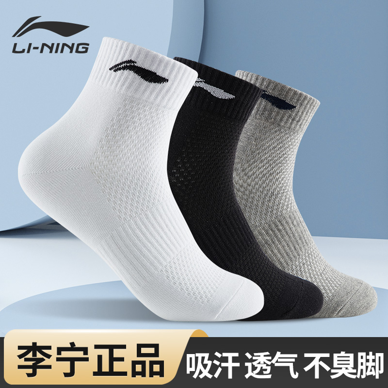 李宁袜子男士夏季款运动袜优棉篮球中筒全棉跑步防嗅羽毛球女专业