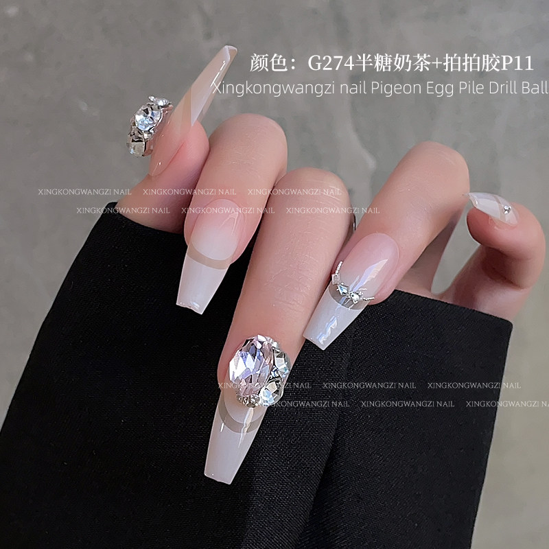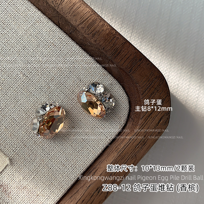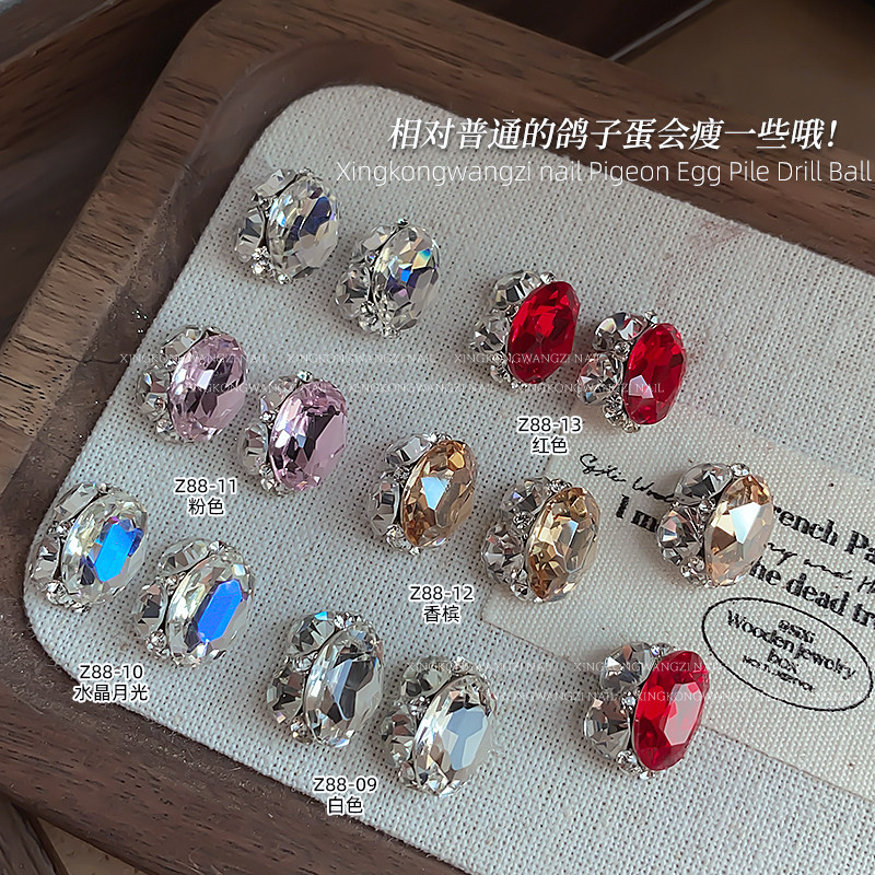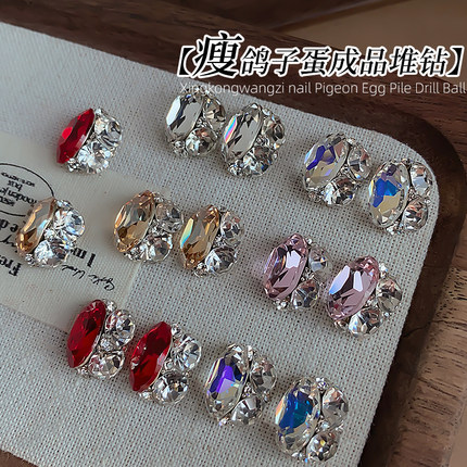 美甲饰品鸽子蛋椭圆堆钻新款超闪轻奢红色香槟色成品钻球指甲钻饰