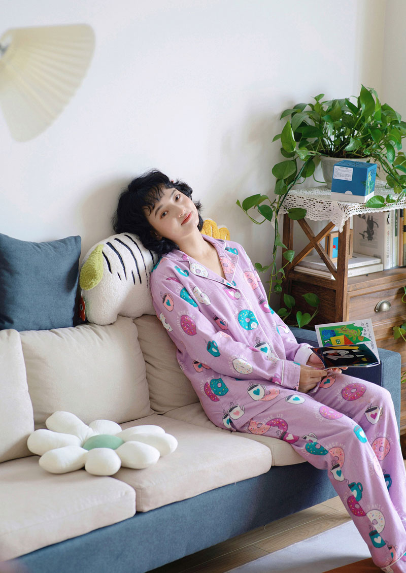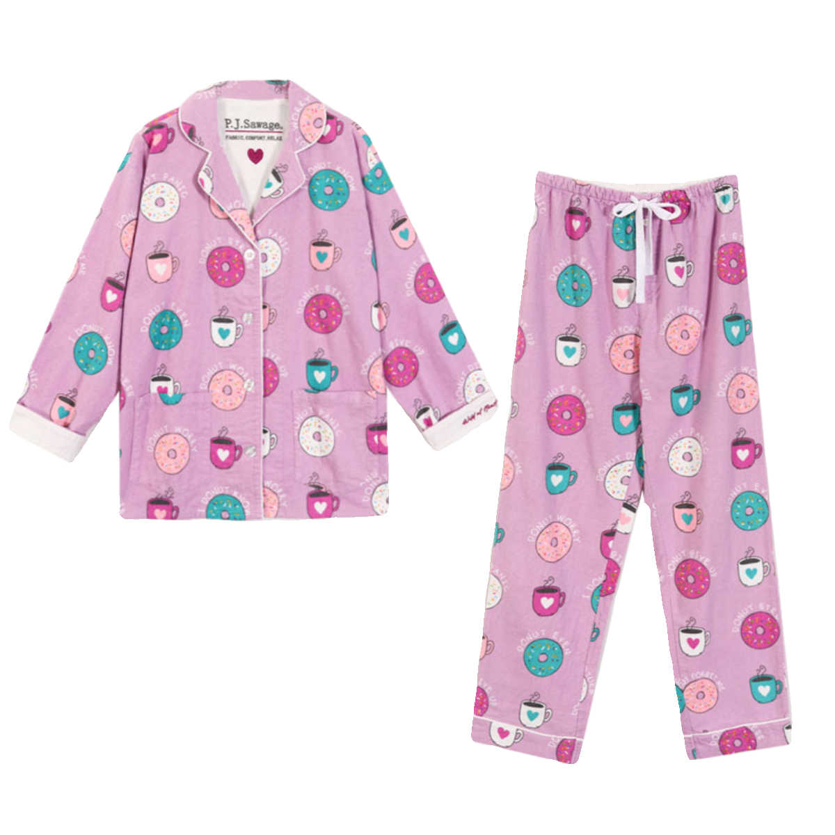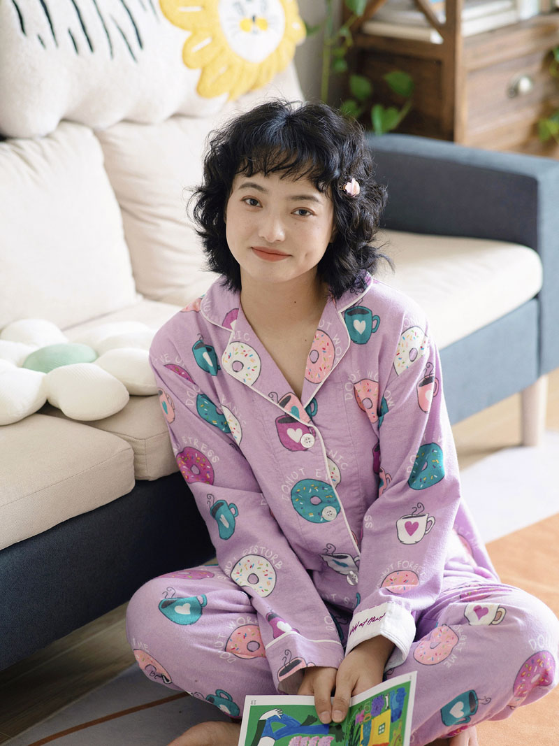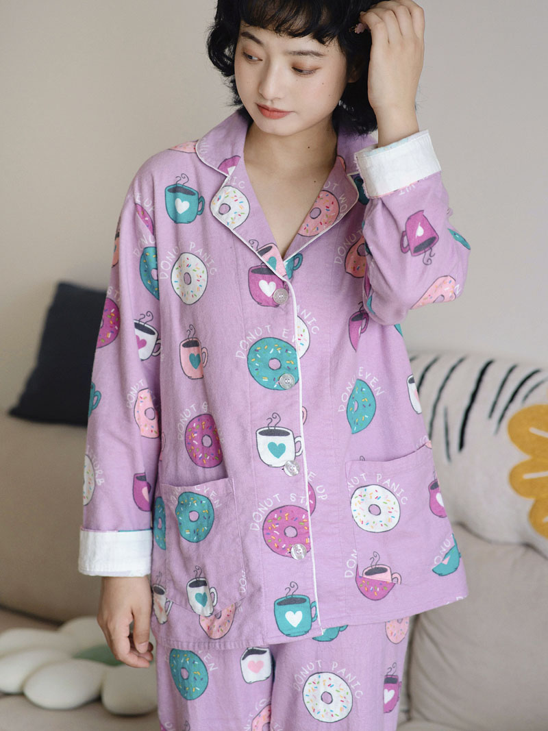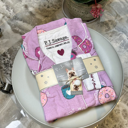 PJS新款甜甜圈春秋纯棉磨毛睡衣