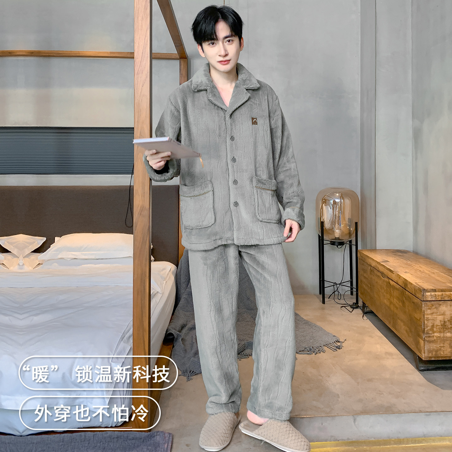 【芬腾】珊瑚绒睡衣加绒加厚保暖
