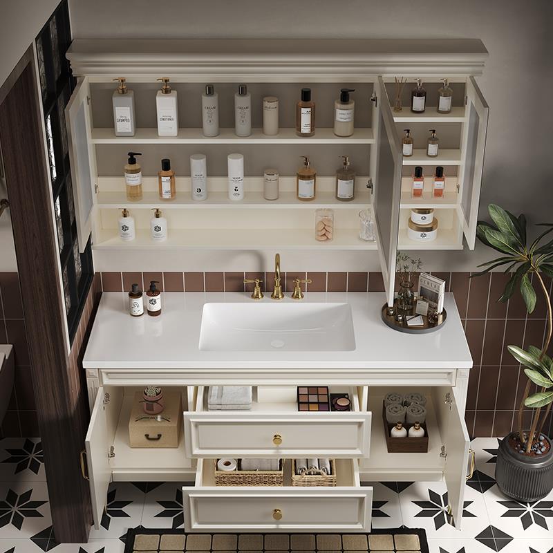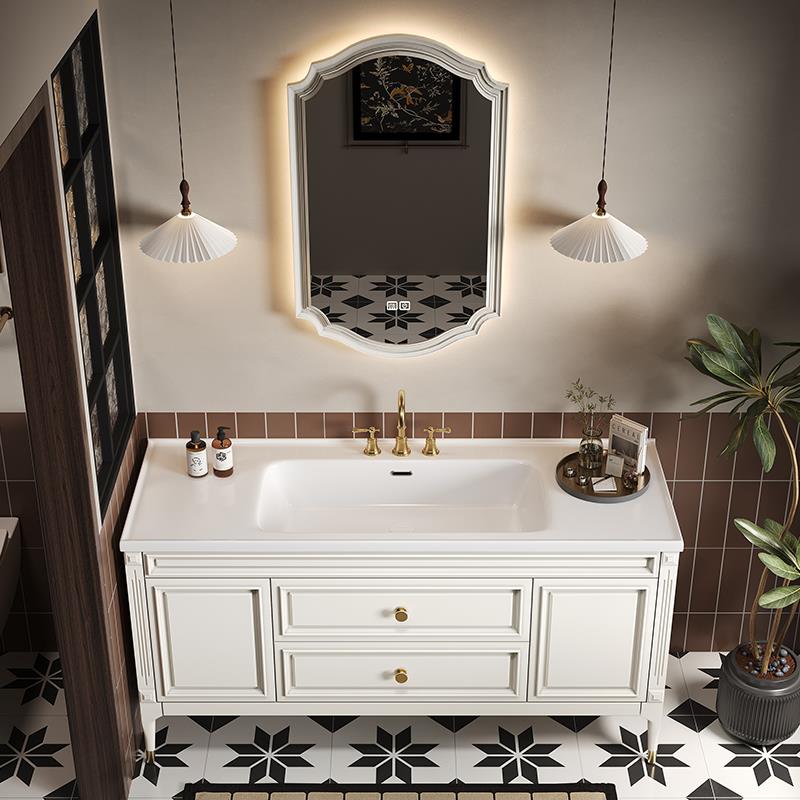 美式橡木浴室柜组合落地智能卫浴柜岩板无缝盆洗漱台洗手脸盆定制