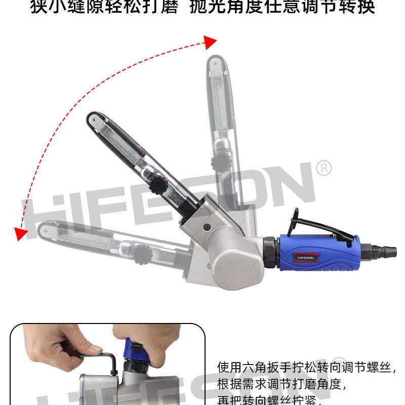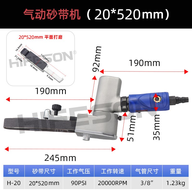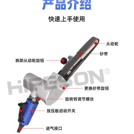 海飞鲨气动砂带机旋转手持拉丝机磨光机环带机条形焊缝打磨机