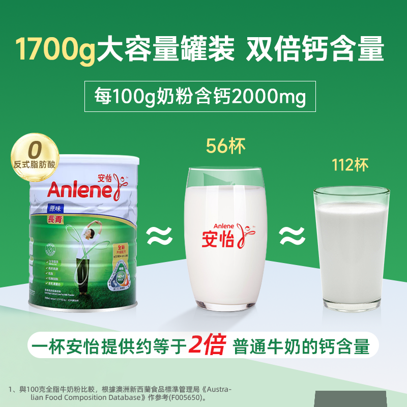 【自营】港版Anlene安怡长青高钙低脂成人奶粉中老年牛奶1700g*2