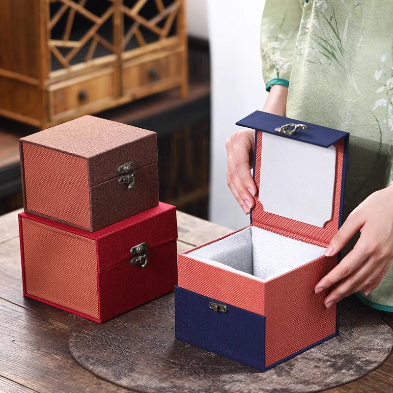 宜兴紫砂壶包装盒茶壶茶杯建盏礼品盒空盒送妆盒亚麻布锦盒订制