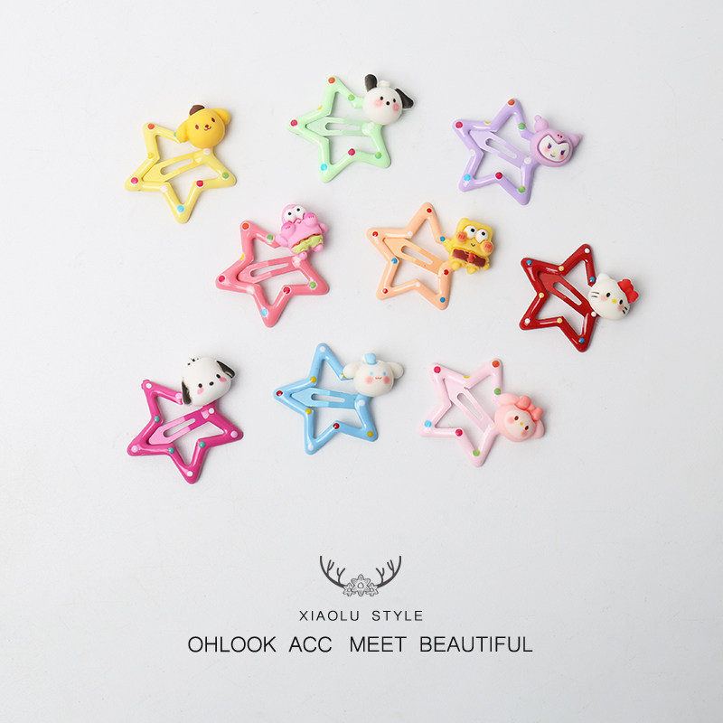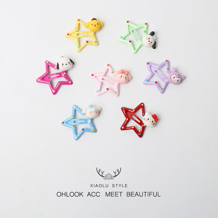 卡通波点发夹bb夹可爱ins星星发卡碎发少女边夹发饰