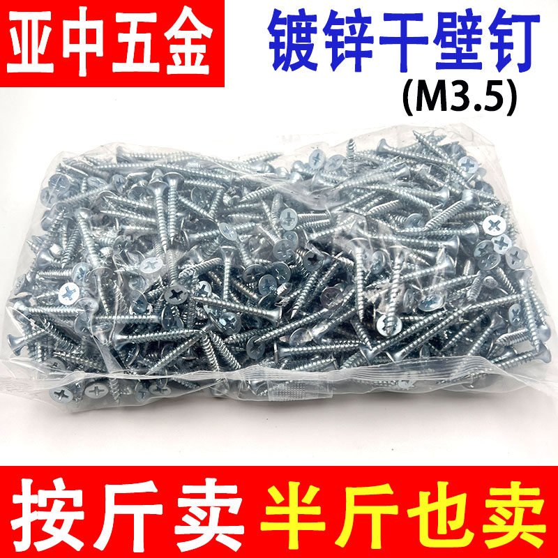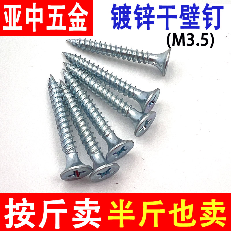 高强度镀锌自攻钉干壁钉白色十字沉头木工螺丝石膏板龙骨螺丝3.5