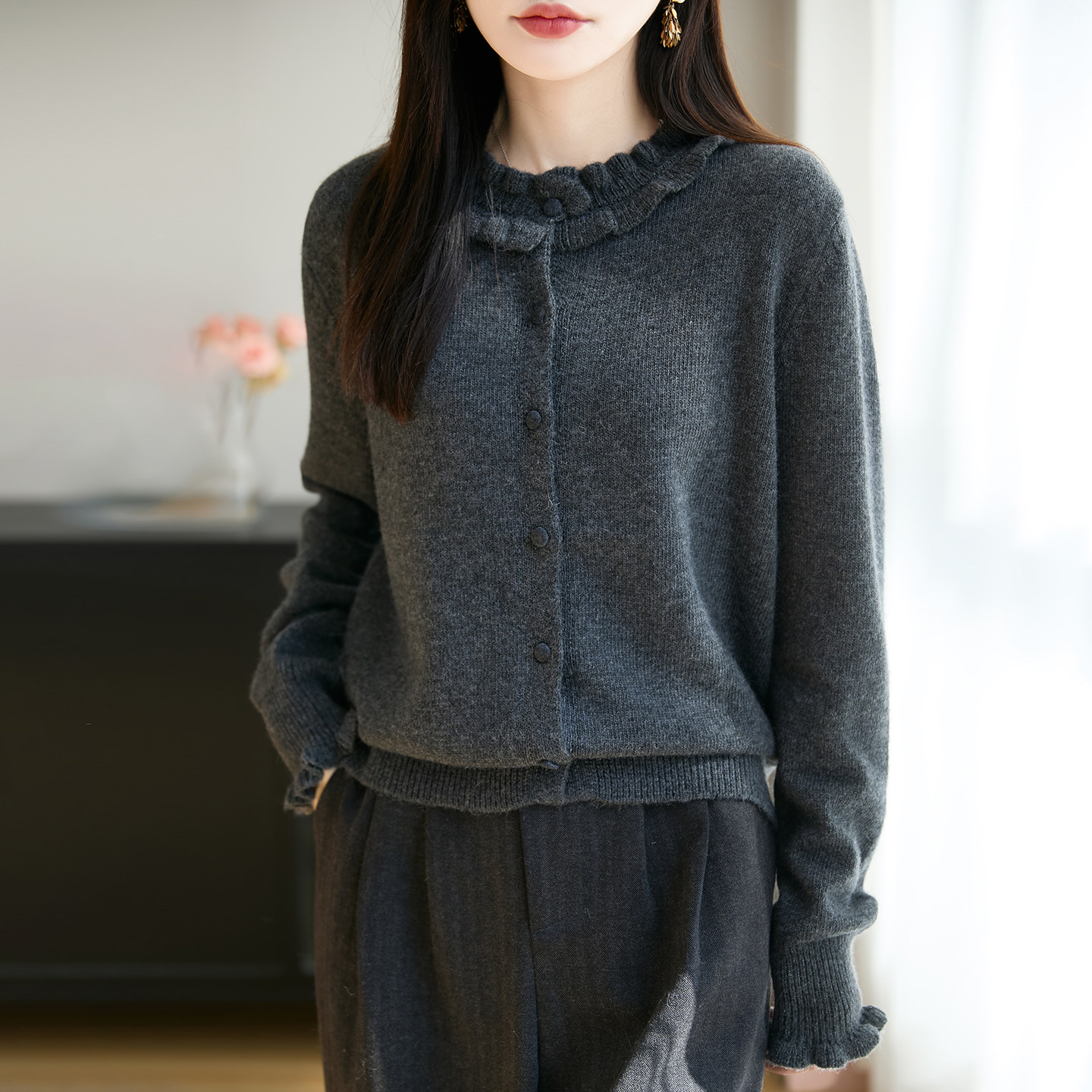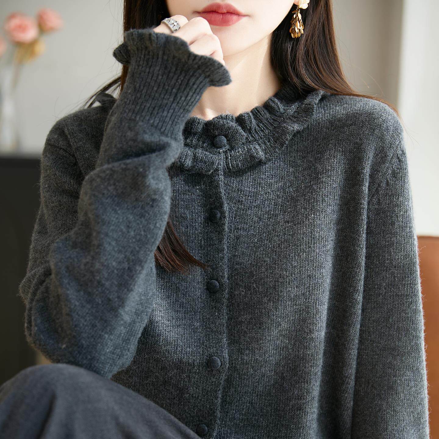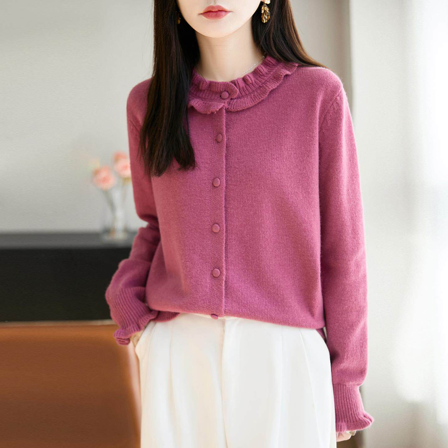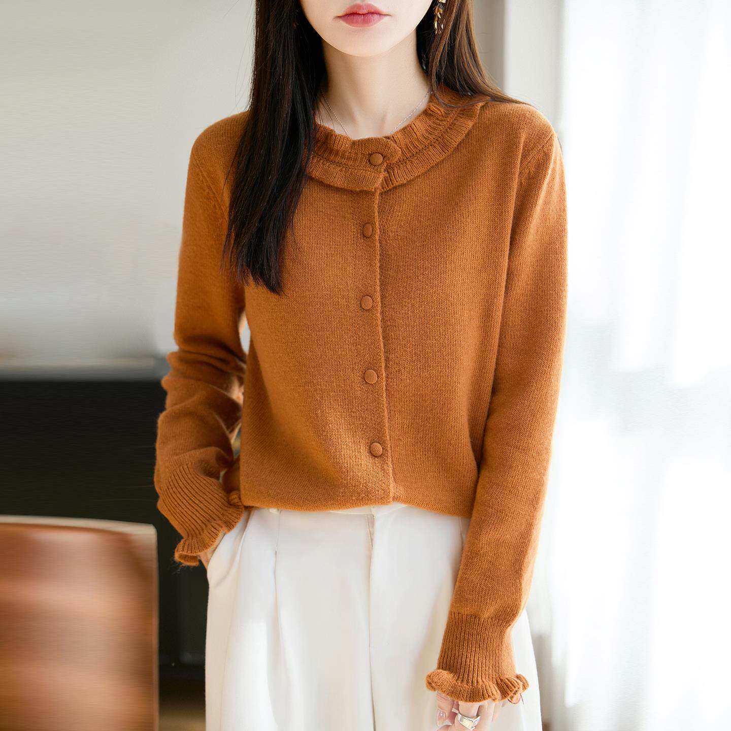 法式精致木耳边针织开衫女2025新款高级感加厚保暖打底衫毛衣外套