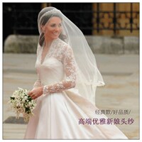 包邮经典款高端王妃同款新娘头纱婚纱配件乳白色新娘蕾丝软纱头纱