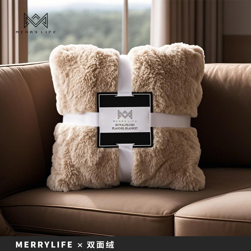 Merrylife 双面毛绒抱枕沙发客厅靠枕兔毛抱枕套轻奢高级北欧风