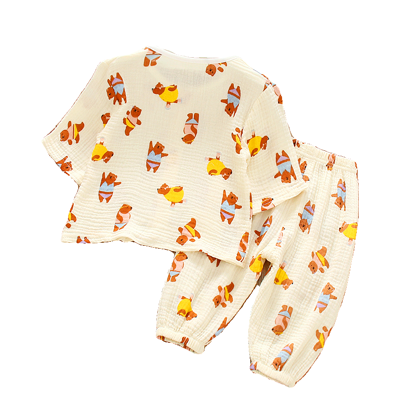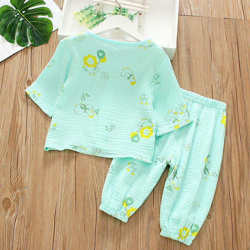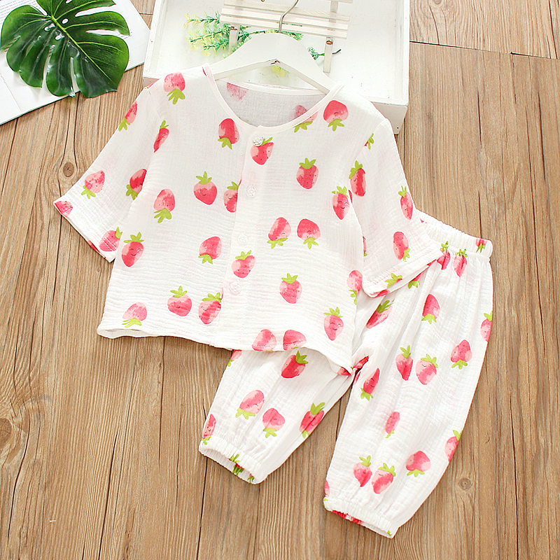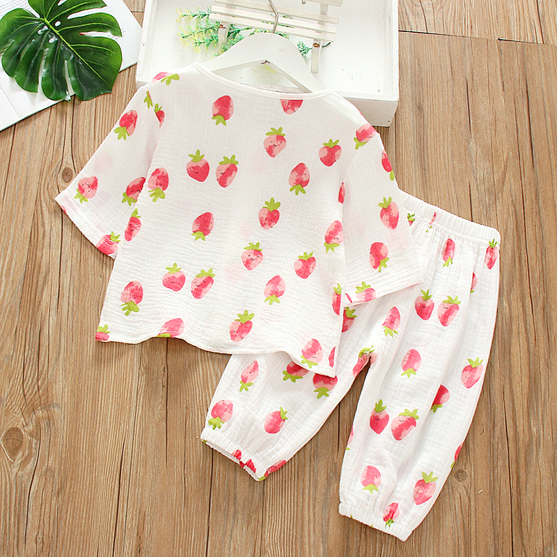 新款儿童春夏季男女童薄款双层七分袖印花洋气睡衣纯棉家居服套装