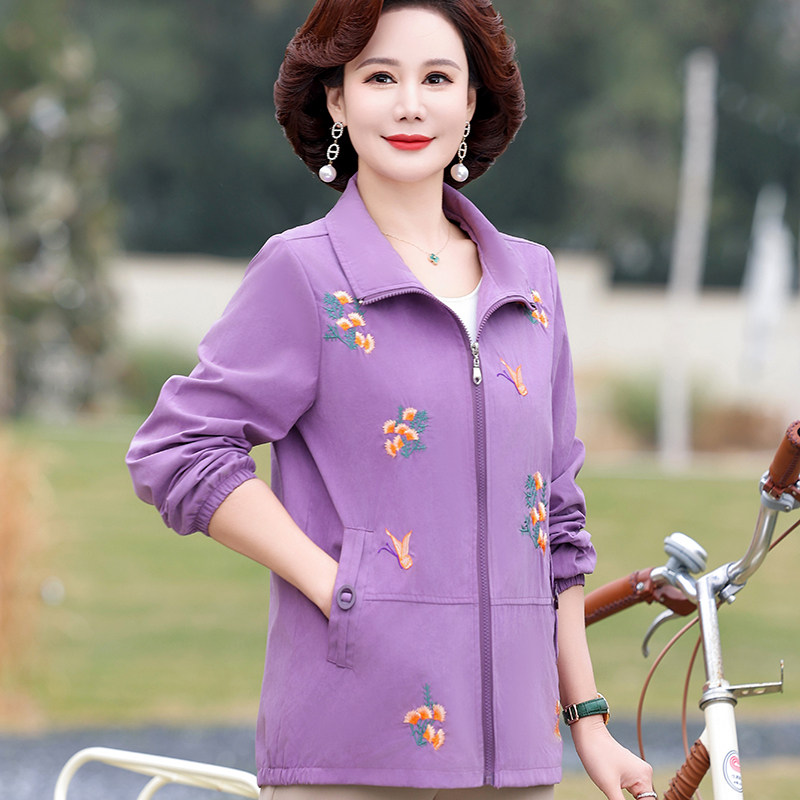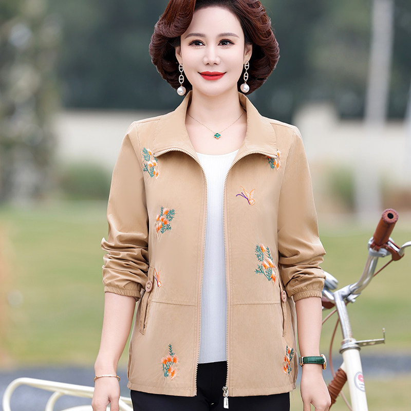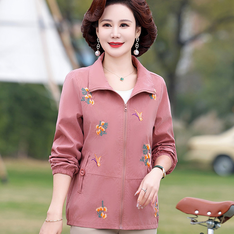 妈妈薄款外套2024春季新款中年女士洋气夹克上衣中老年女短款风衣