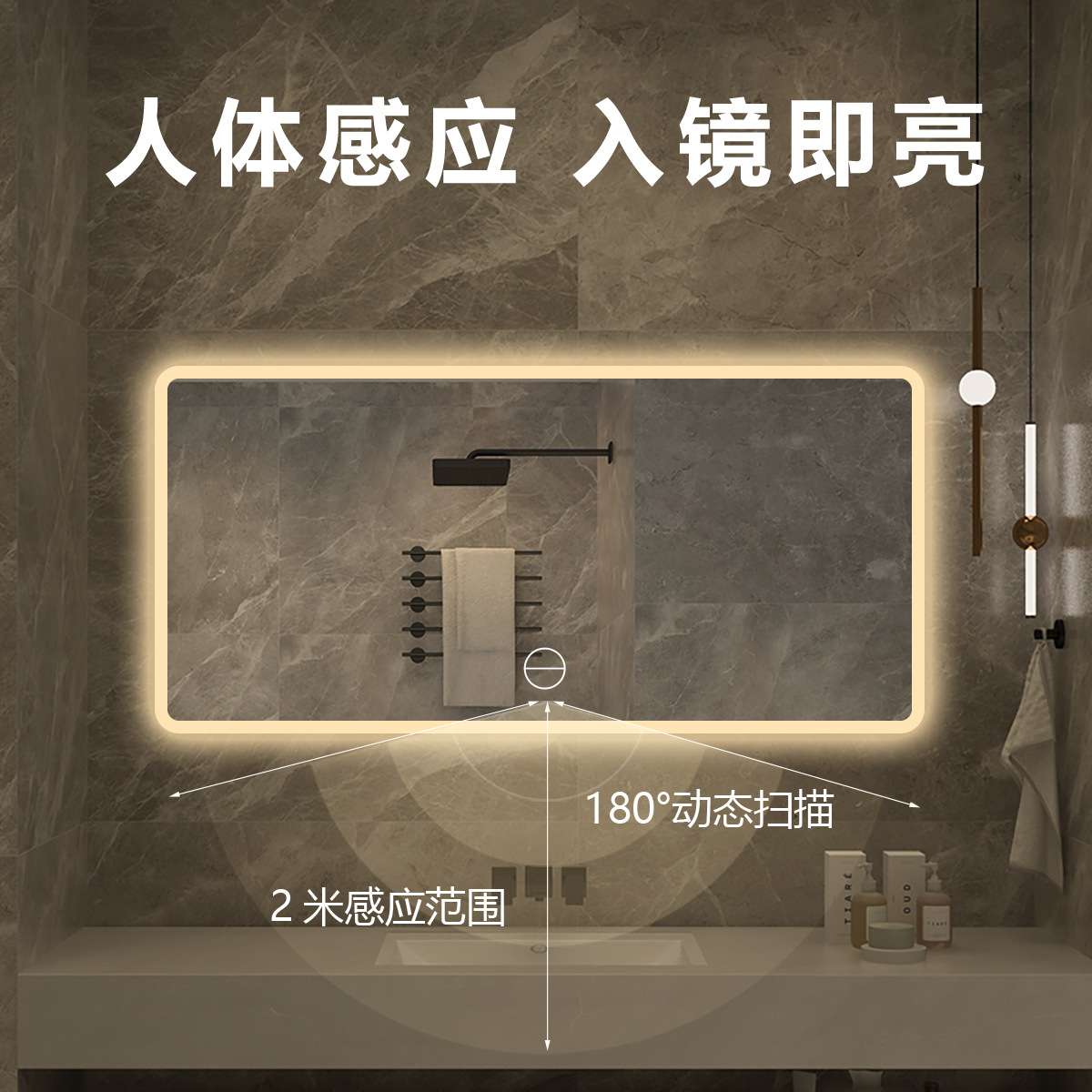 方形镜子挂墙智能浴室镜卫生间带灯led触摸屏感应除雾发光壁挂镜